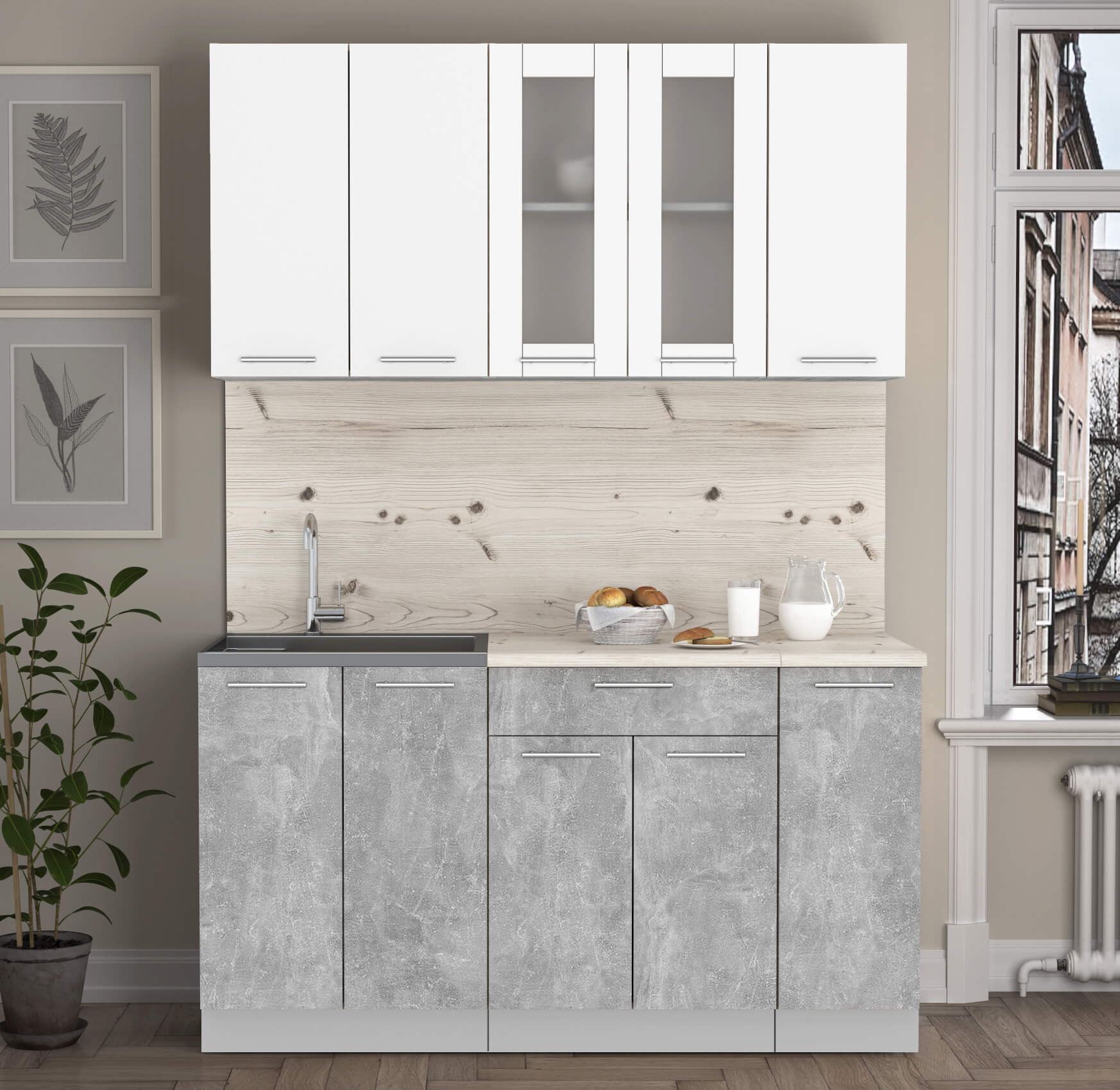 ГОТОВАЯ КУХНЯ "МИЛА15" (БЕЛЫЙ/ БЕТОН) - Yuta.by