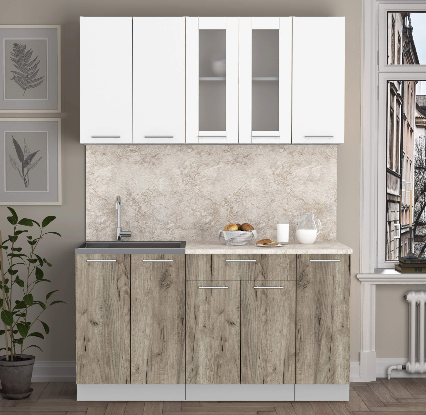 ГОТОВАЯ КУХНЯ "МИЛА15" (БЕЛЫЙ/ ДУБ СЕРЫЙ) - Yuta.by