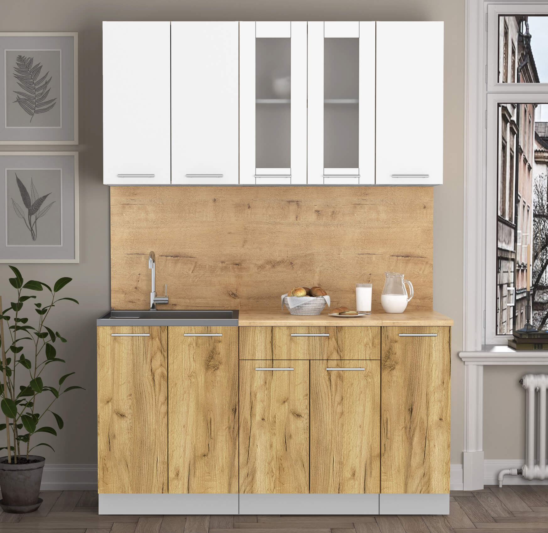 ГОТОВАЯ КУХНЯ "МИЛА15" (БЕЛЫЙ/ ДУБ ЗОЛОТОЙ) - Yuta.by
