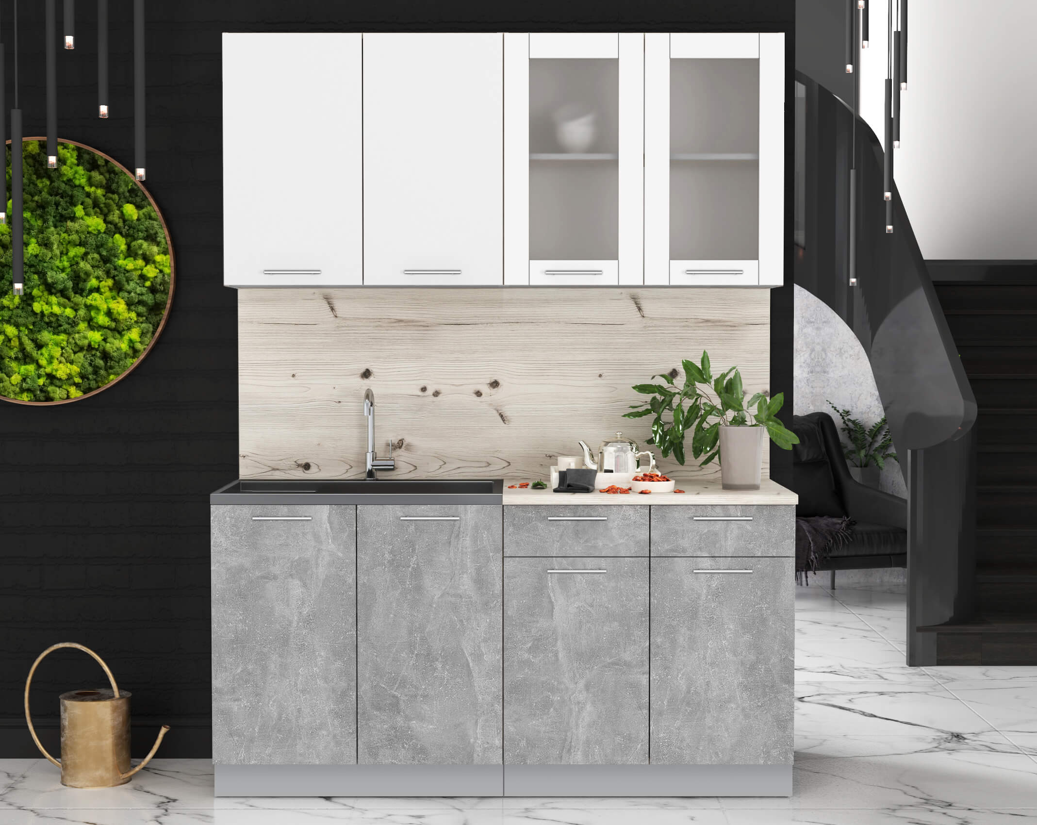 ГОТОВАЯ КУХНЯ "МИЛА16" (БЕЛЫЙ/ БЕТОН) - Yuta.by