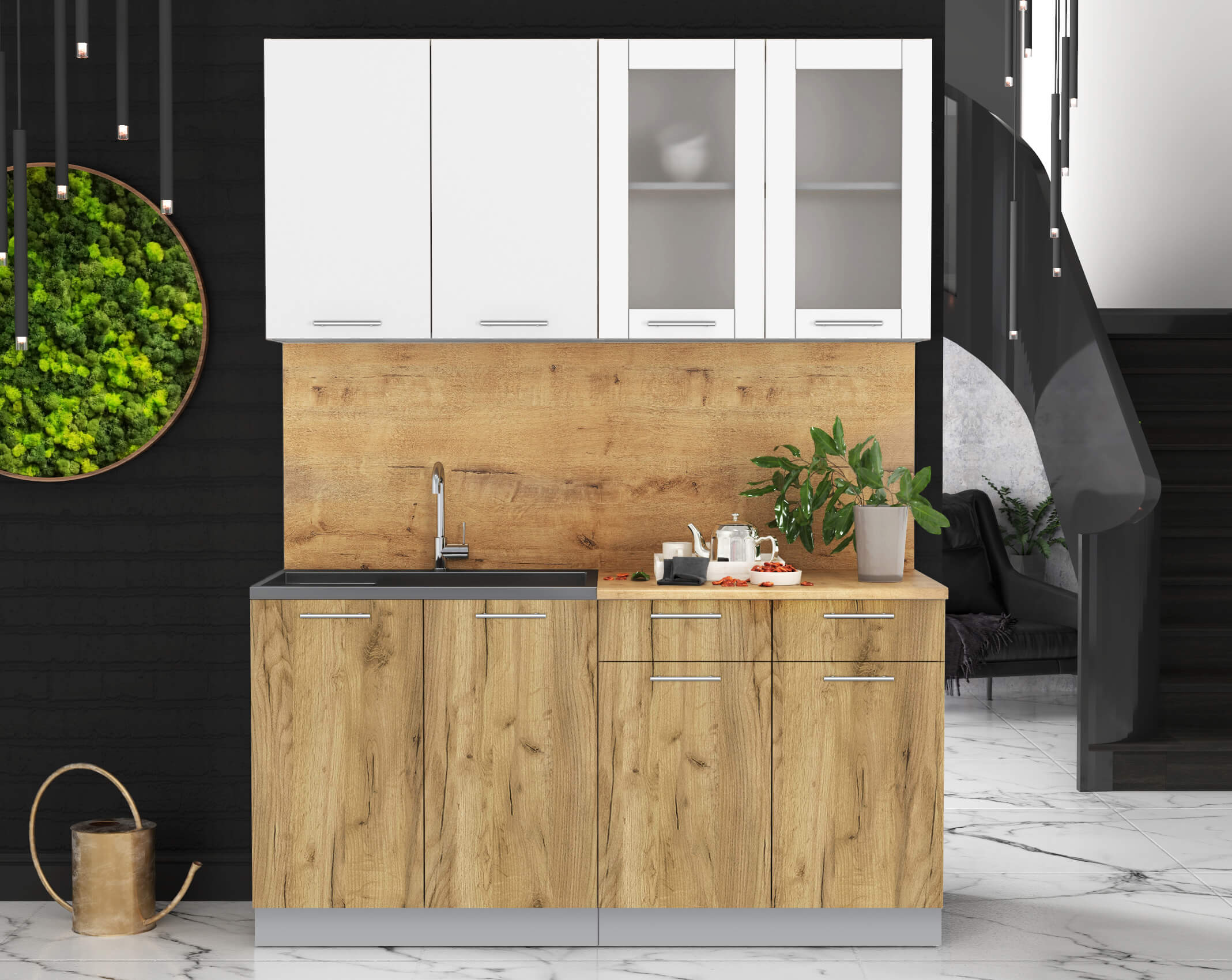 ГОТОВАЯ КУХНЯ "МИЛА16" (БЕЛЫЙ/ ДУБ ЗОЛОТОЙ) - Yuta.by