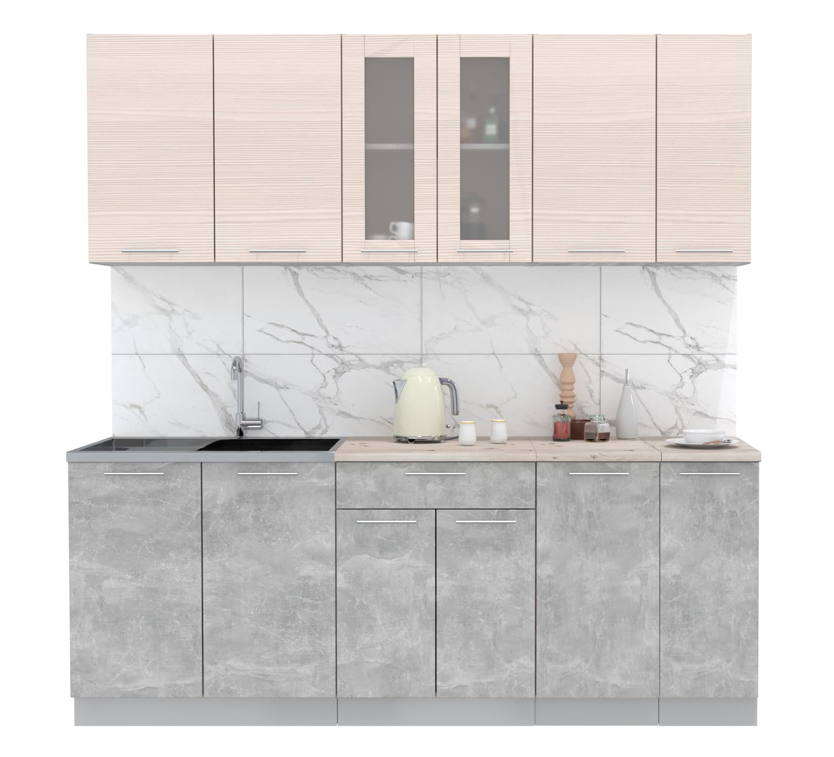 ГОТОВАЯ КУХНЯ "МИЛА21" (ВУДЛАЙН КРЕМОВЫЙ/ БЕТОН) - Yuta.by