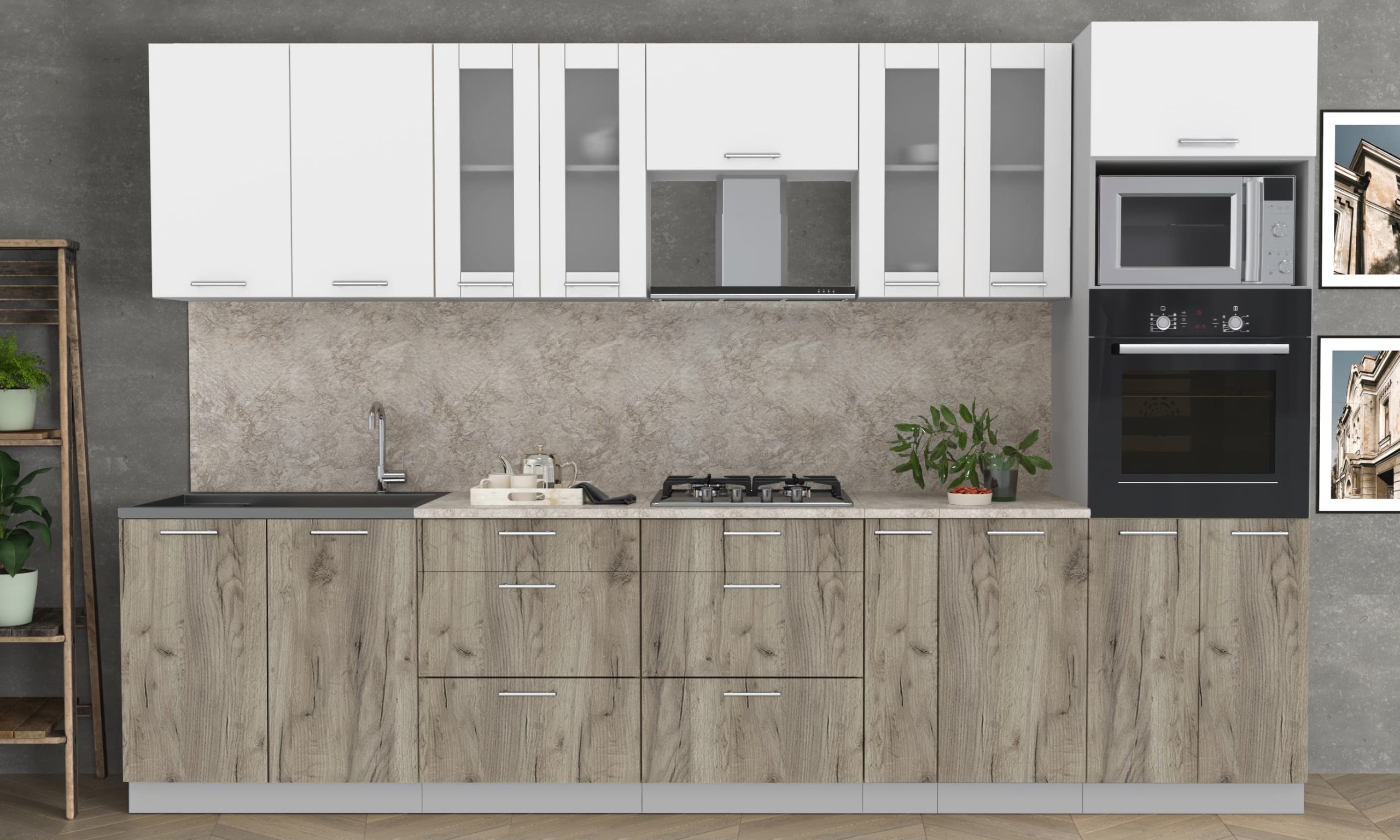 ГОТОВАЯ КУХНЯ "МИЛА32 ВТ" (БЕЛЫЙ/ ДУБ СЕРЫЙ) - Yuta.by