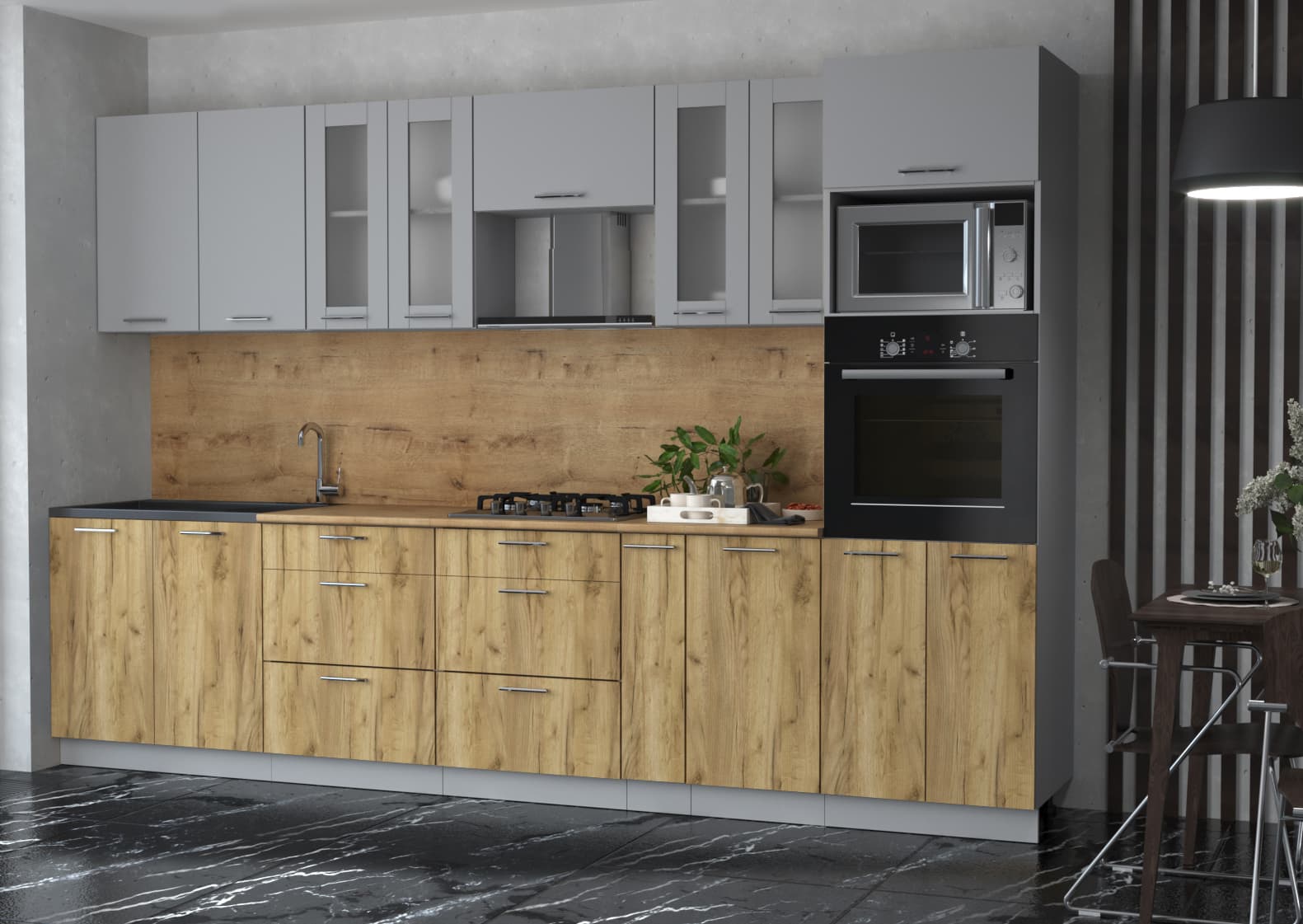 ГОТОВАЯ КУХНЯ "МИЛА32 ВТ" (СЕРЕБРО/ ДУБ ЗОЛОТОЙ) - Yuta.by