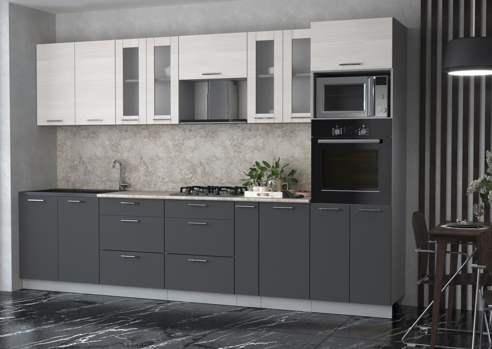 ГОТОВАЯ КУХНЯ "МИЛА32 ВТ" (ВУДЛАЙН КРЕМОВЫЙ/ АНТРАЦИТ) - Yuta.by