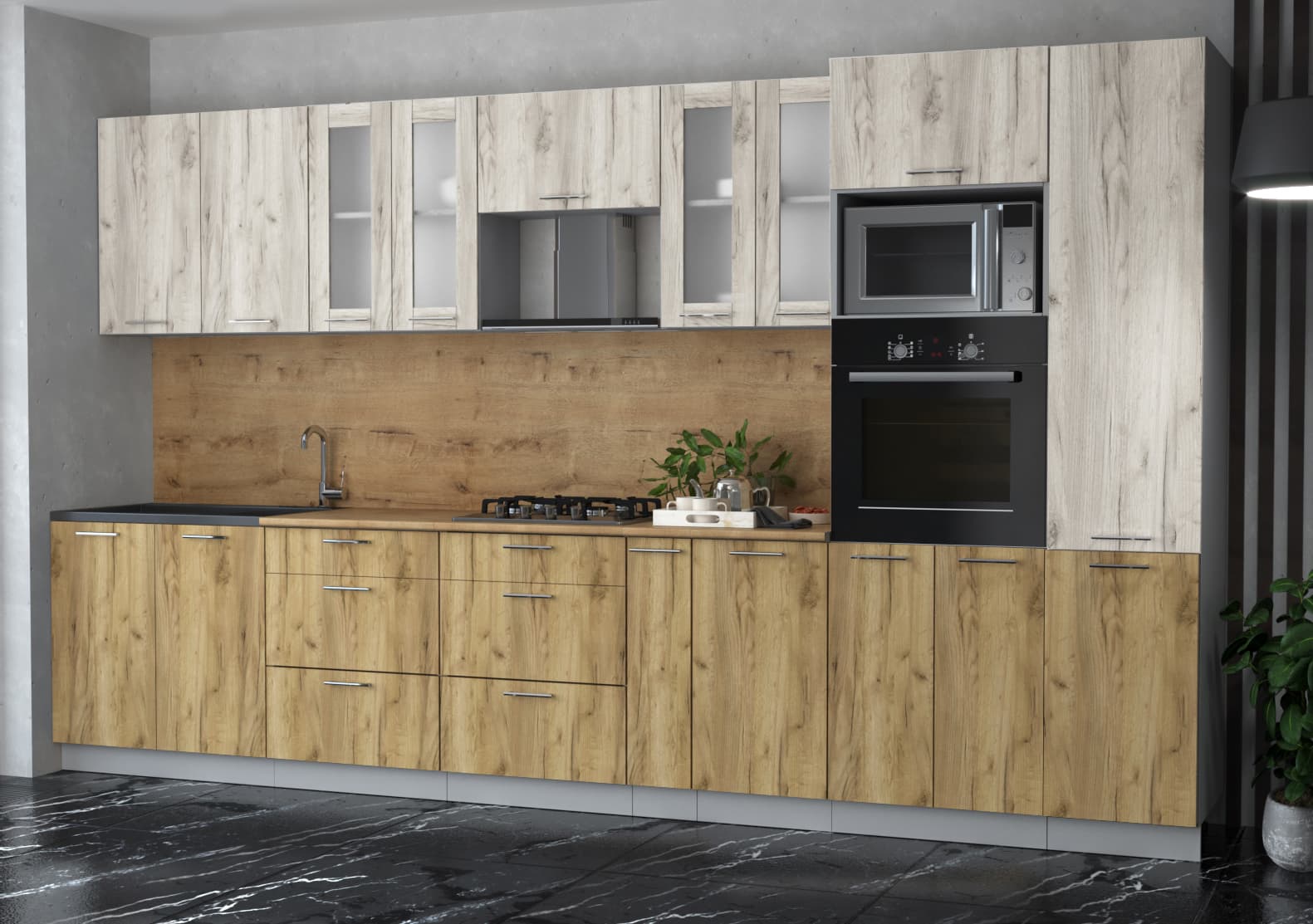 ГОТОВАЯ КУХНЯ "МИЛА36 ВТ" (ДУБ БЕЛЫЙ/ ДУБ ЗОЛОТОЙ) - Yuta.by