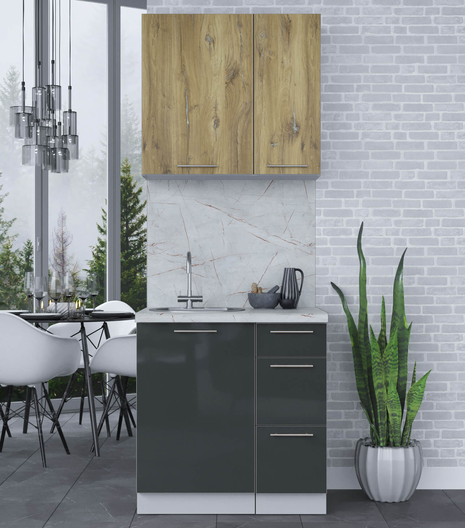 ГОТОВАЯ КУХНЯ ПЛАСТИК 0,8А (ДУБ ЭПОКСИД/ АНТРАЦИТ) - Yuta.by