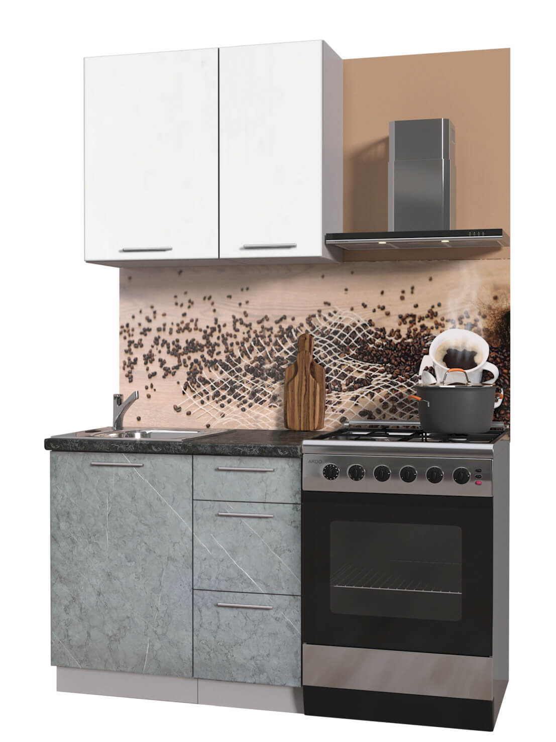 ГОТОВАЯ КУХНЯ ПЛАСТИК 0,9А (БЕЛЫЙ ГЛЯНЕЦ/ МРАМОР) - Yuta.by