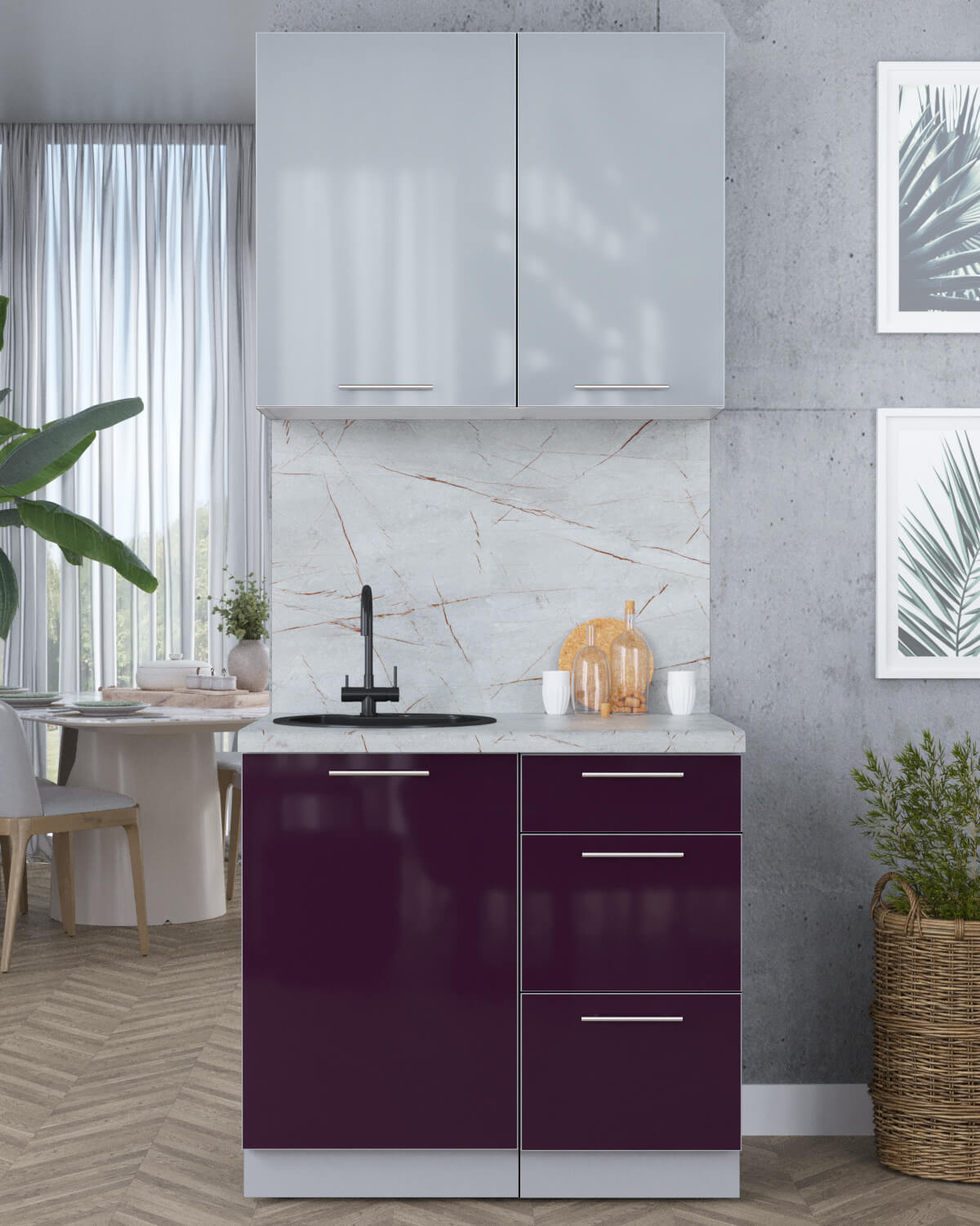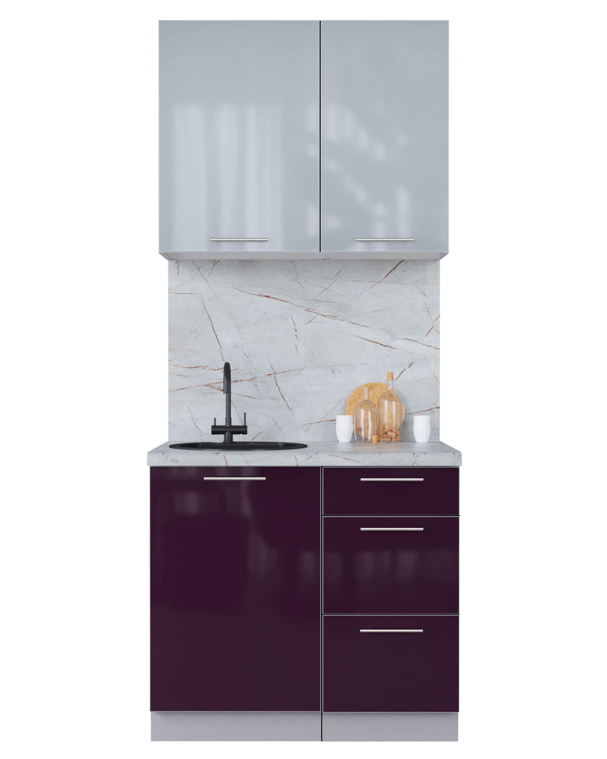 ГОТОВАЯ КУХНЯ ПЛАСТИК 0,9А (ТУМАННЫЙ ГЛЯНЕЦ/ СЛИВА ГЛЯНЕЦ) - Yuta.by