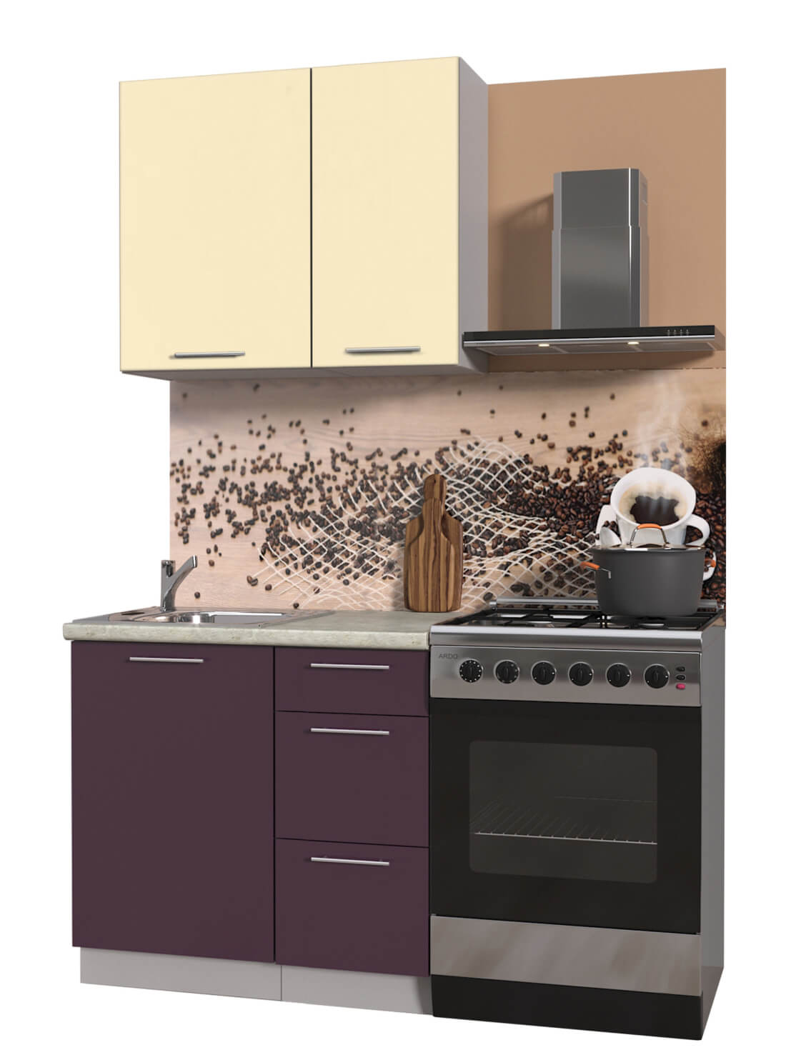 ГОТОВАЯ КУХНЯ ПЛАСТИК 0,9А (ВАНИЛЬ ГЛЯНЕЦ/ СЛИВА ГЛЯНЕЦ) - Yuta.by