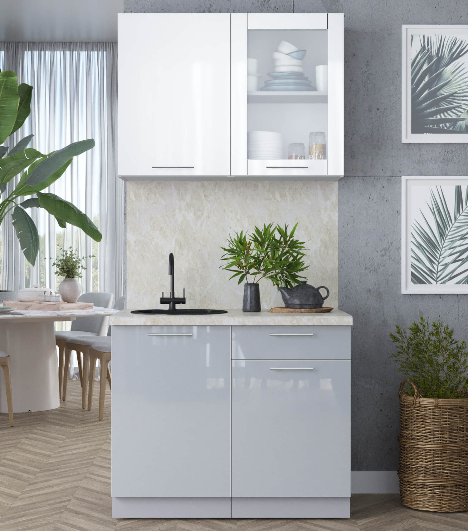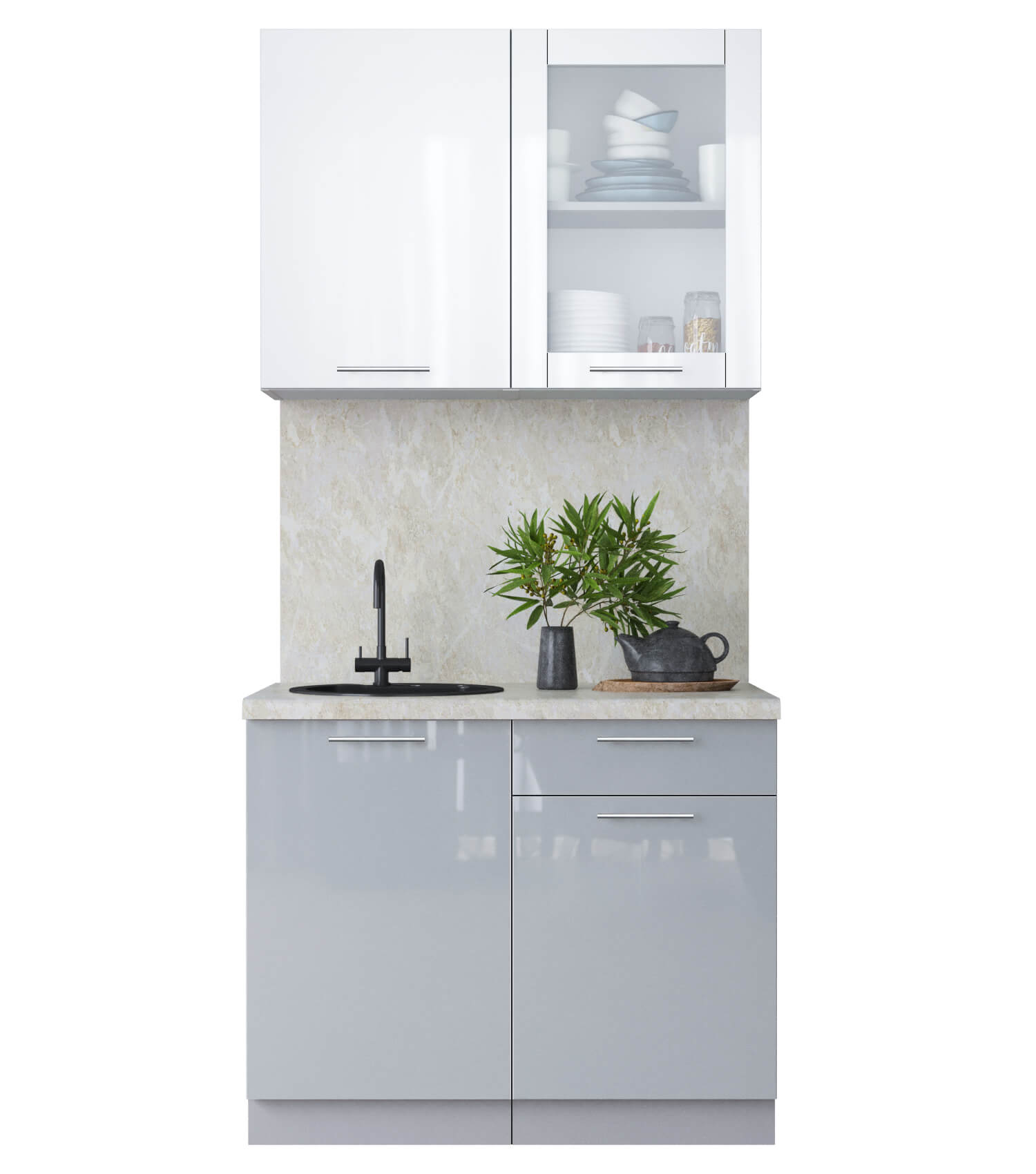 ГОТОВАЯ КУХНЯ ПЛАСТИК 1,0Б (БЕЛЫЙ ГЛЯНЕЦ/ ТУМАННЫЙ ГЛЯНЕЦ) - Yuta.by
