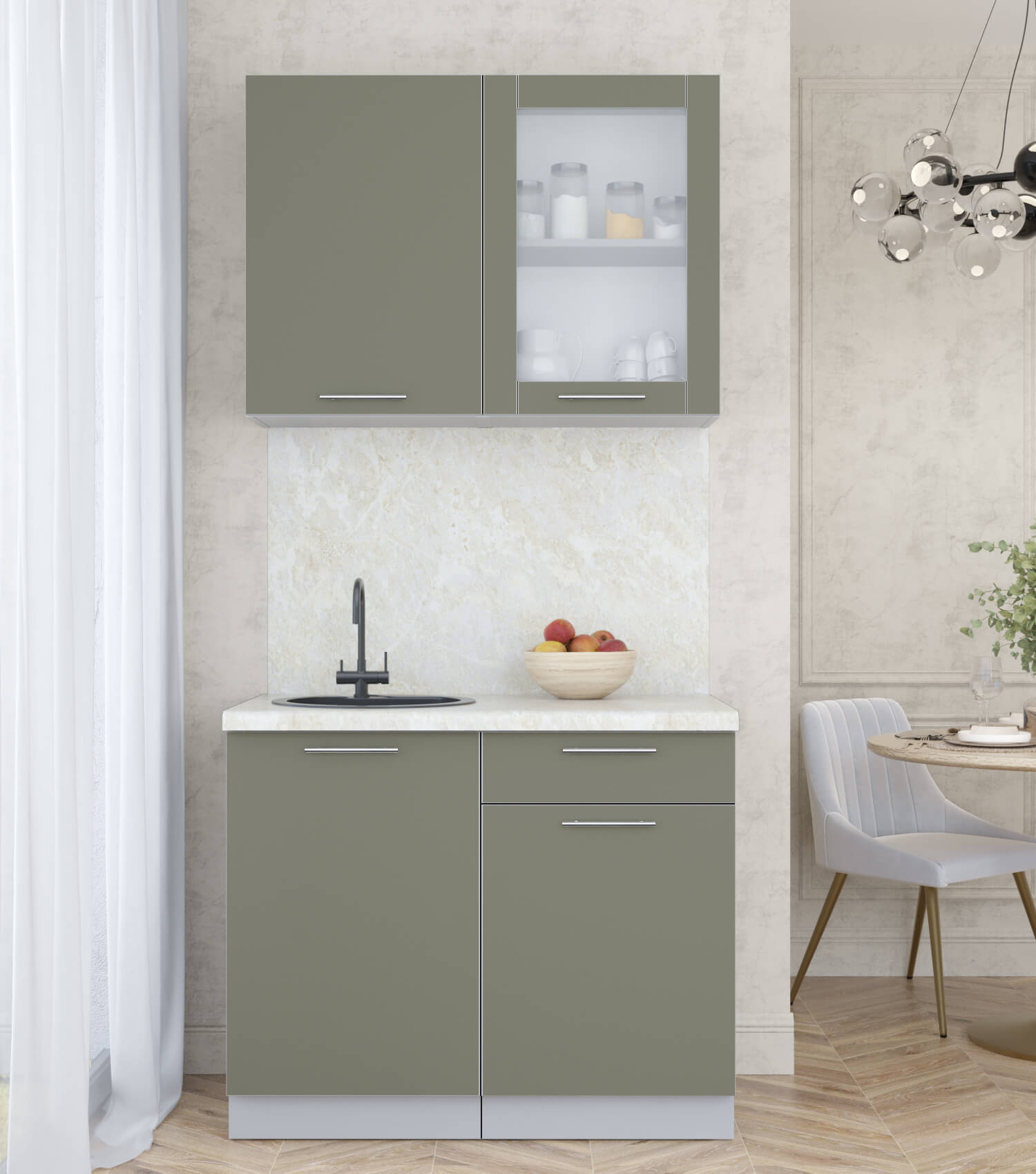 ГОТОВАЯ КУХНЯ ПЛАСТИК 1,0Б (КВАРЦЕВЫЙ/ КВАРЦЕВЫЙ) - Yuta.by