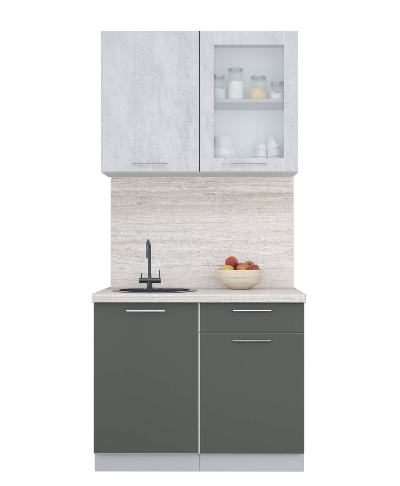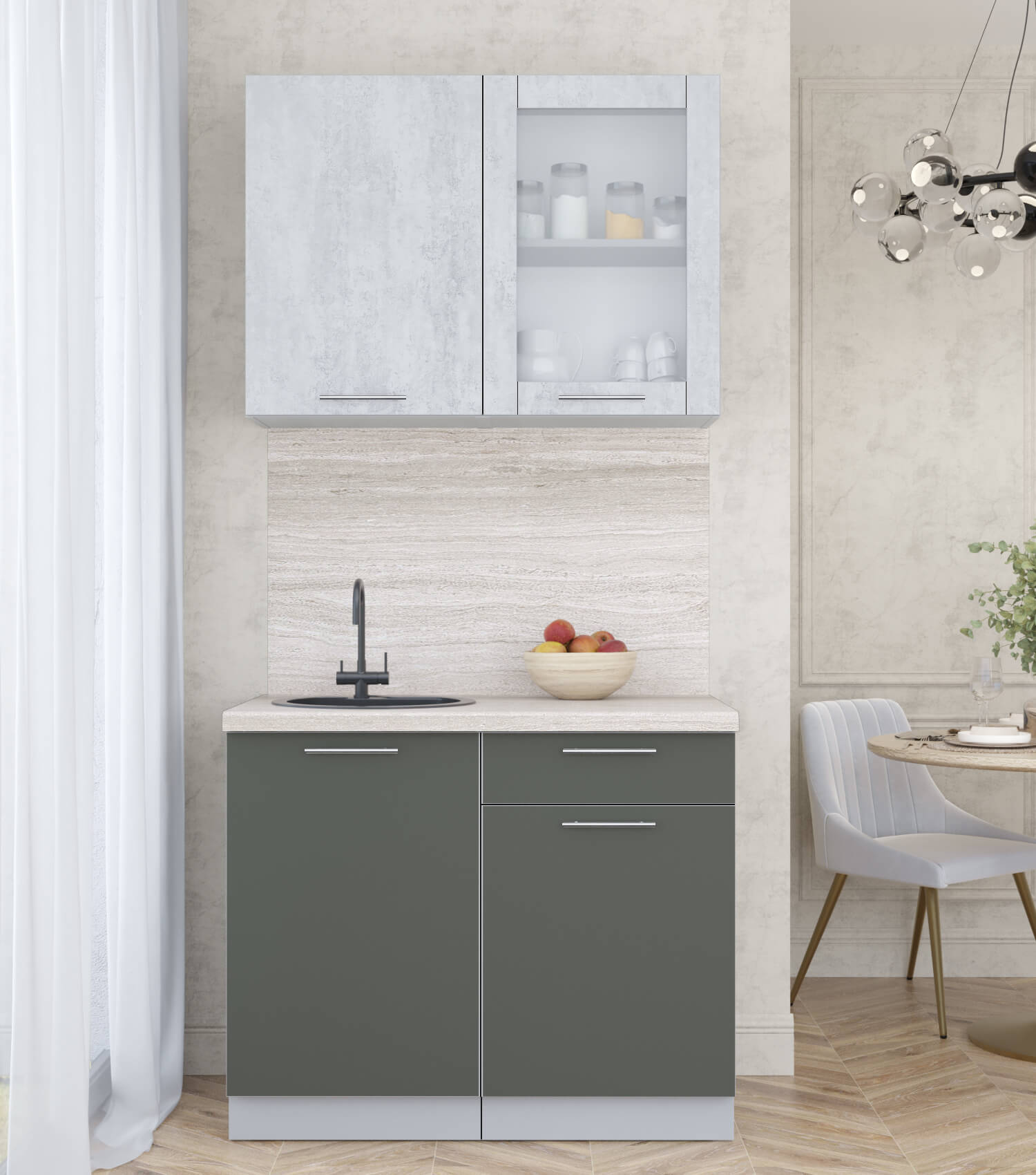 ГОТОВАЯ КУХНЯ ПЛАСТИК 1,0Б (ОКСИД СВЕТЛЫЙ/ ШТОРМ) - Yuta.by