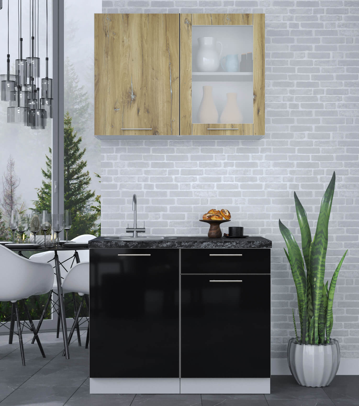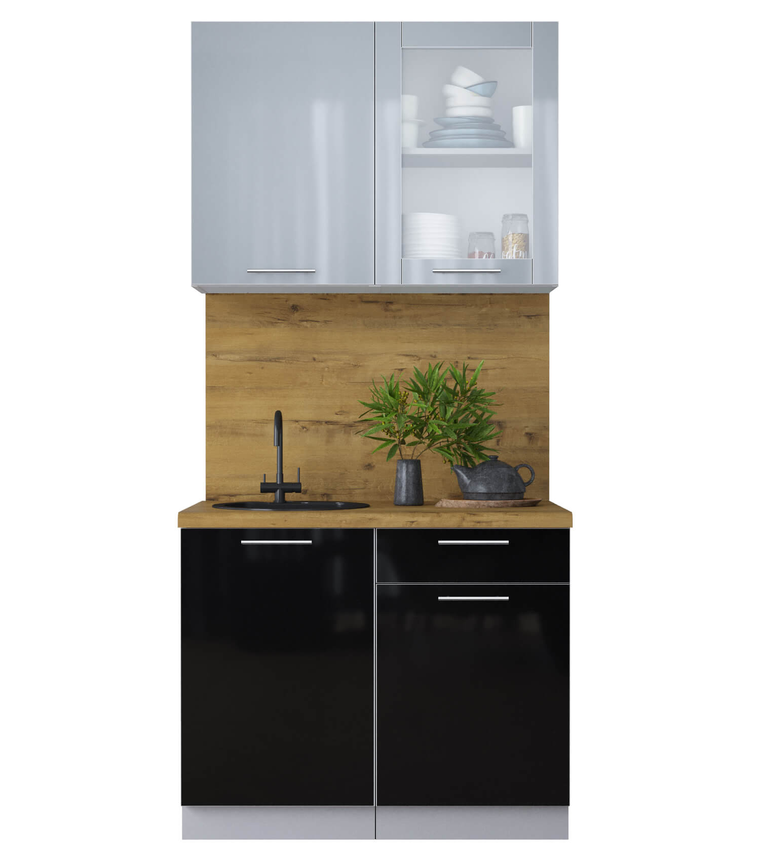 ГОТОВАЯ КУХНЯ ПЛАСТИК 1,0Б (ТУМАННЫЙ ГЛЯНЕЦ/ ЧЕРНЫЙ ГЛЯНЕЦ) - Yuta.by