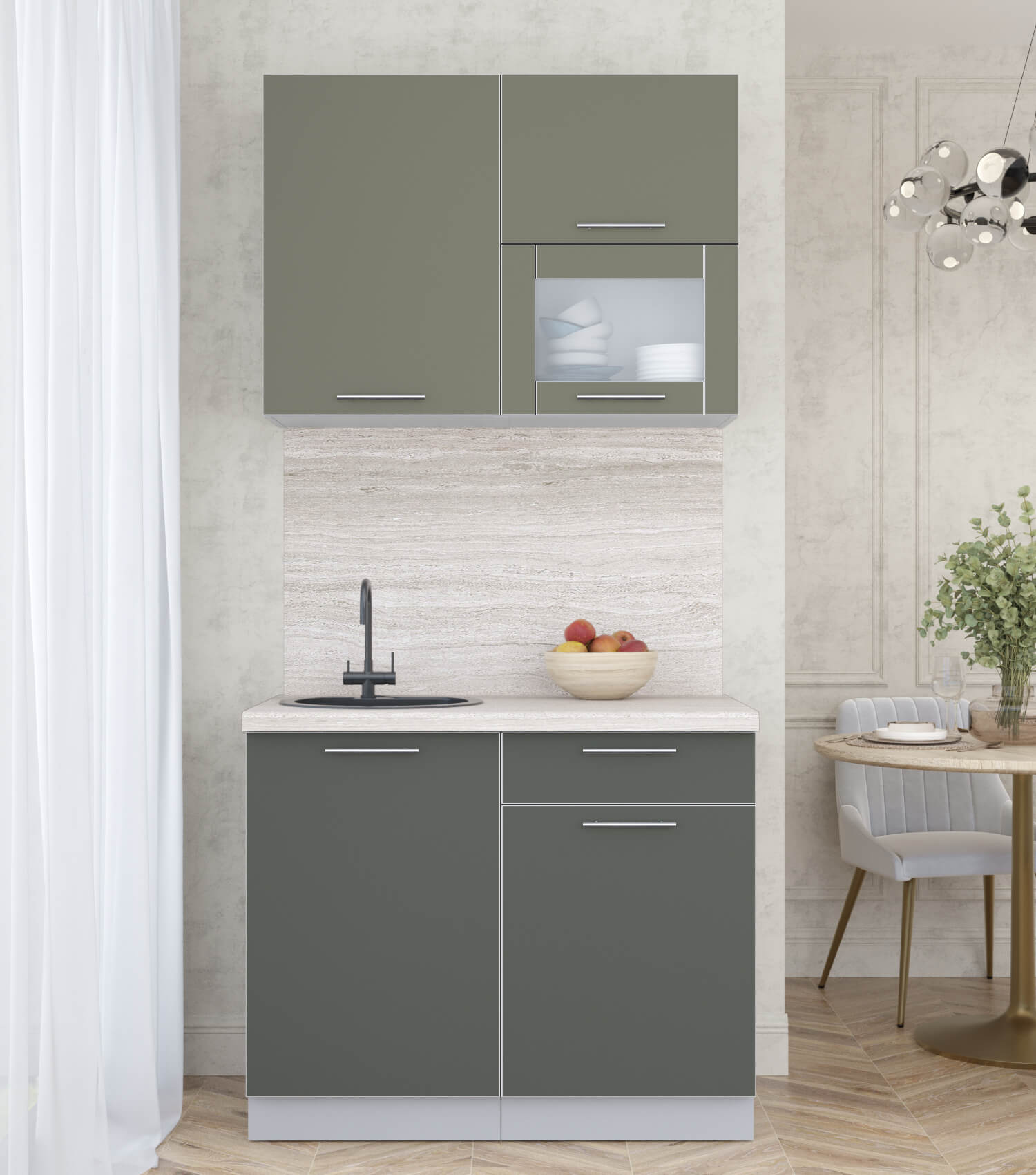 ГОТОВАЯ КУХНЯ ПЛАСТИК 1,0В (КВАРЦЕВЫЙ/ ШТОРМ) - Yuta.by