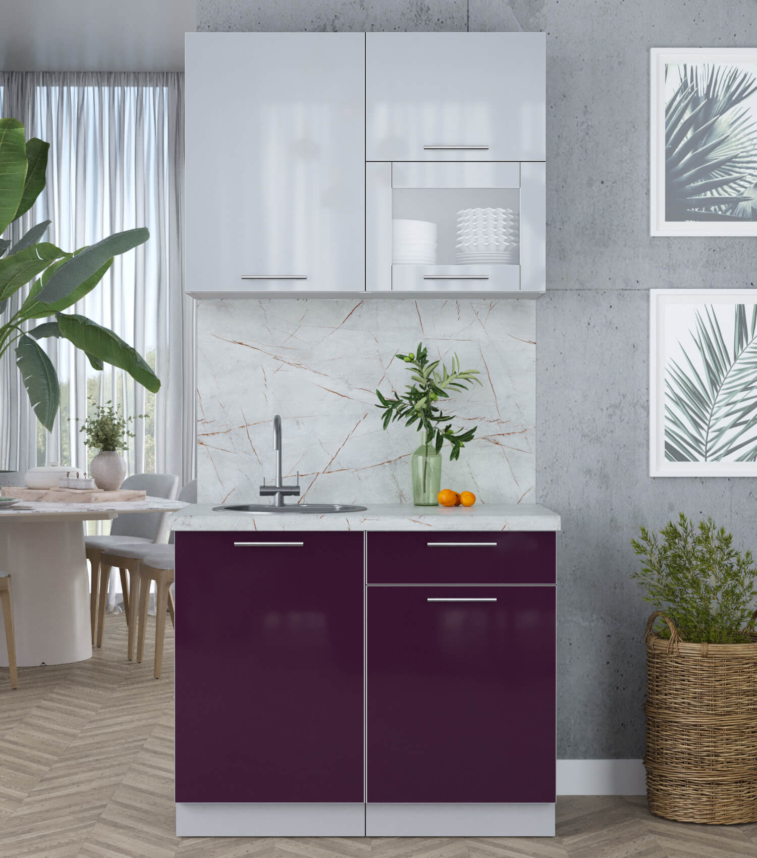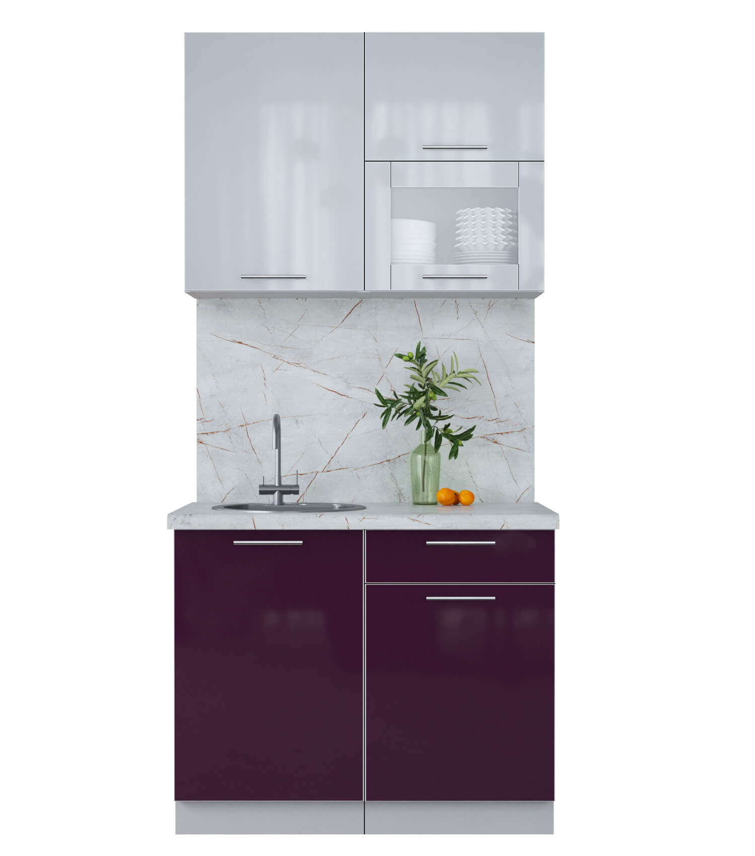ГОТОВАЯ КУХНЯ ПЛАСТИК 1,0В (ТУМАННЫЙ ГЛЯНЕЦ/ СЛИВА ГЛЯНЕЦ) - Yuta.by