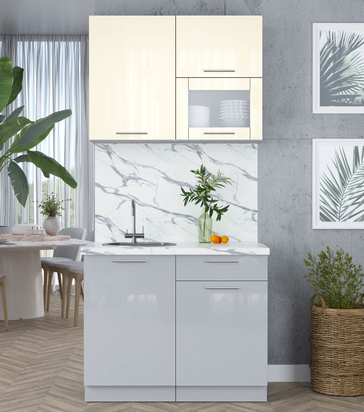 ГОТОВАЯ КУХНЯ ПЛАСТИК 1,0В (ВАНИЛЬ ГЛЯНЕЦ/ ТУМАННЫЙ ГЛЯНЕЦ) - Yuta.by