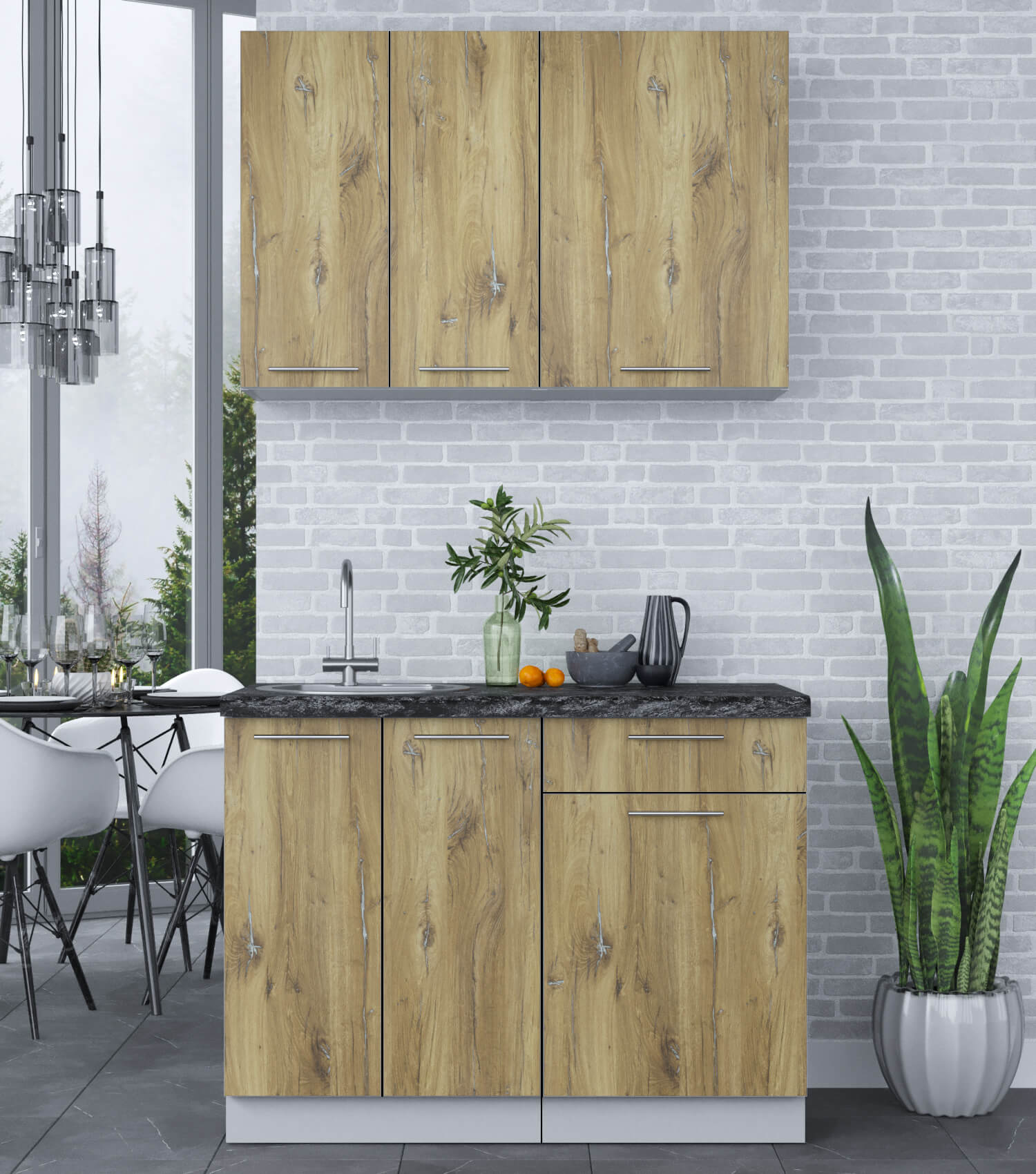 ГОТОВАЯ КУХНЯ ПЛАСТИК 1,1А (ДУБ ЭПОКСИД/ ДУБ ЭПОКСИД) - Yuta.by
