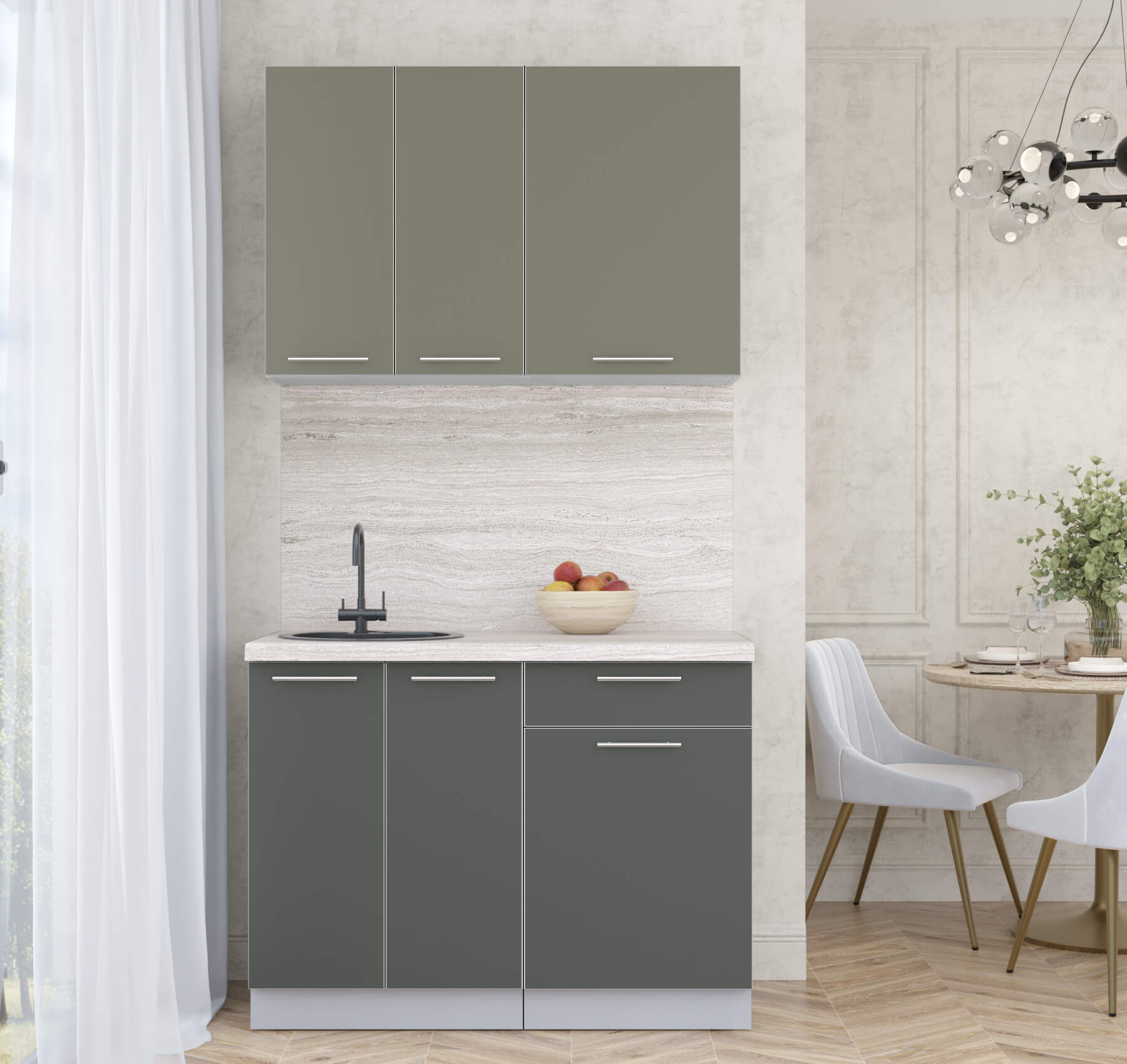 ГОТОВАЯ КУХНЯ ПЛАСТИК 1,1А (КВАРЦЕВЫЙ/ ШТОРМ) - Yuta.by