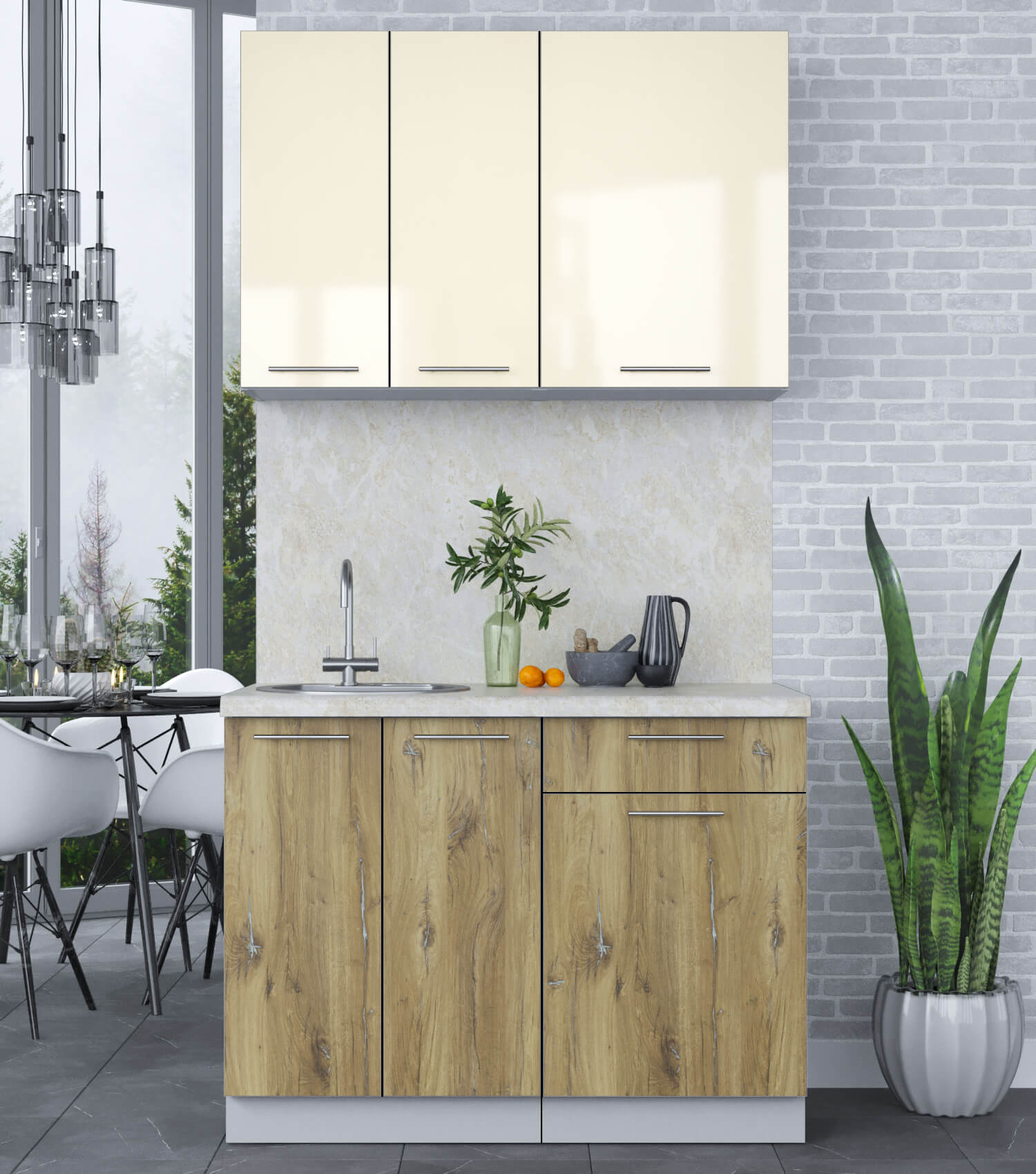 ГОТОВАЯ КУХНЯ ПЛАСТИК 1,1А (ВАНИЛЬ ГЛЯНЕЦ/ ДУБ ЭПОКСИД) - Yuta.by