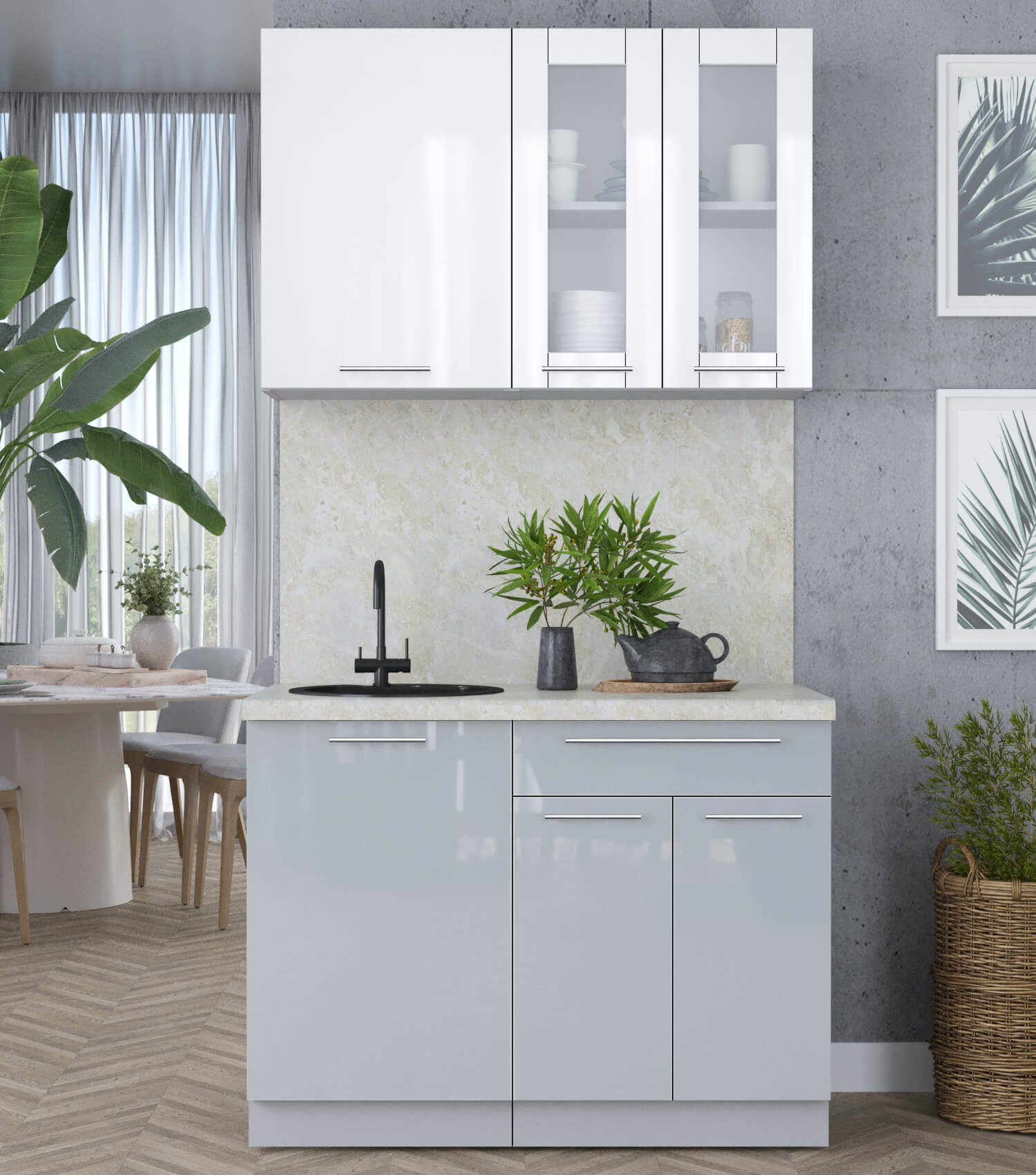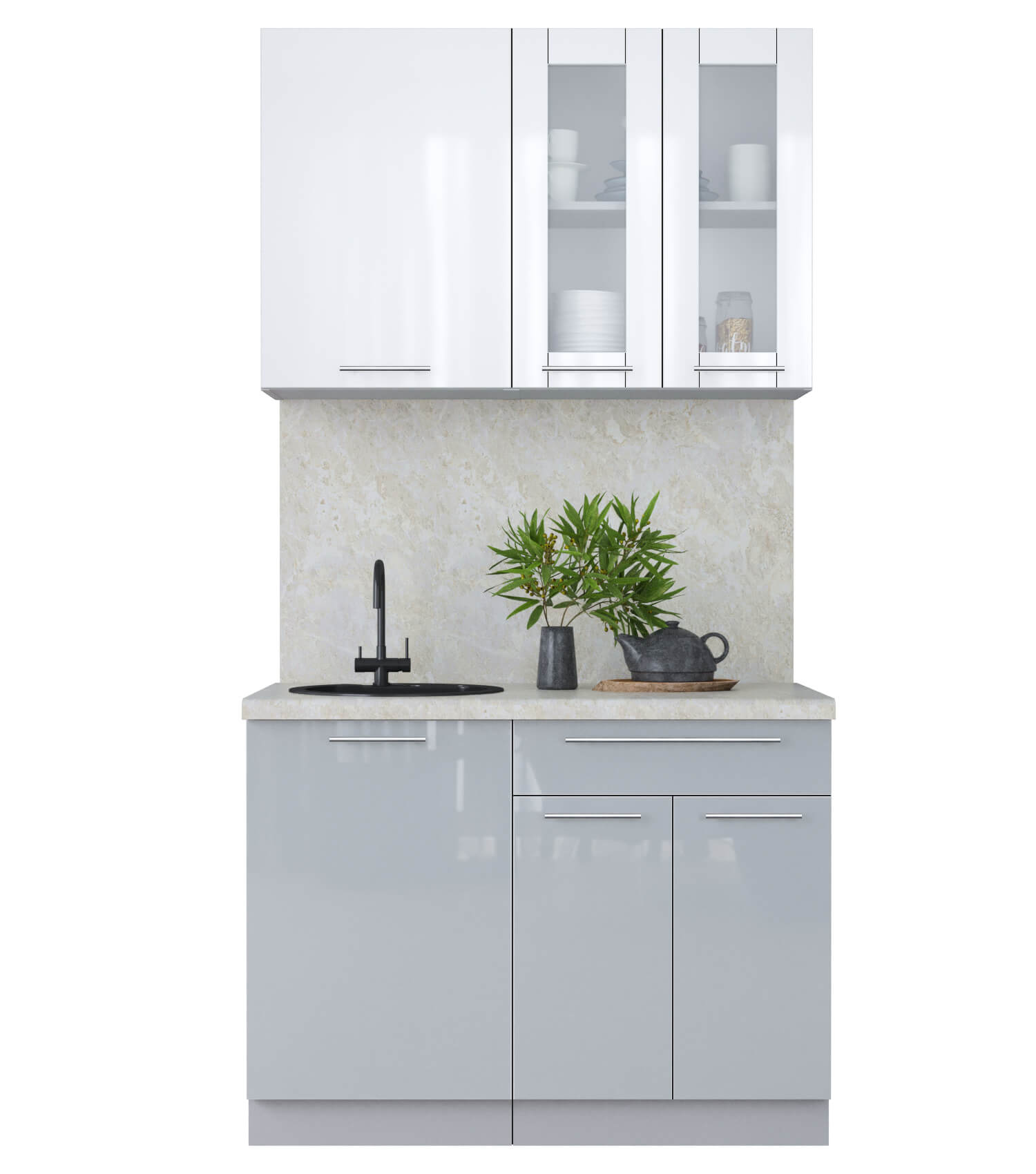 ГОТОВАЯ КУХНЯ ПЛАСТИК 1,1Б (БЕЛЫЙ ГЛЯНЕЦ/ ТУМАННЫЙ ГЛЯНЕЦ) - Yuta.by