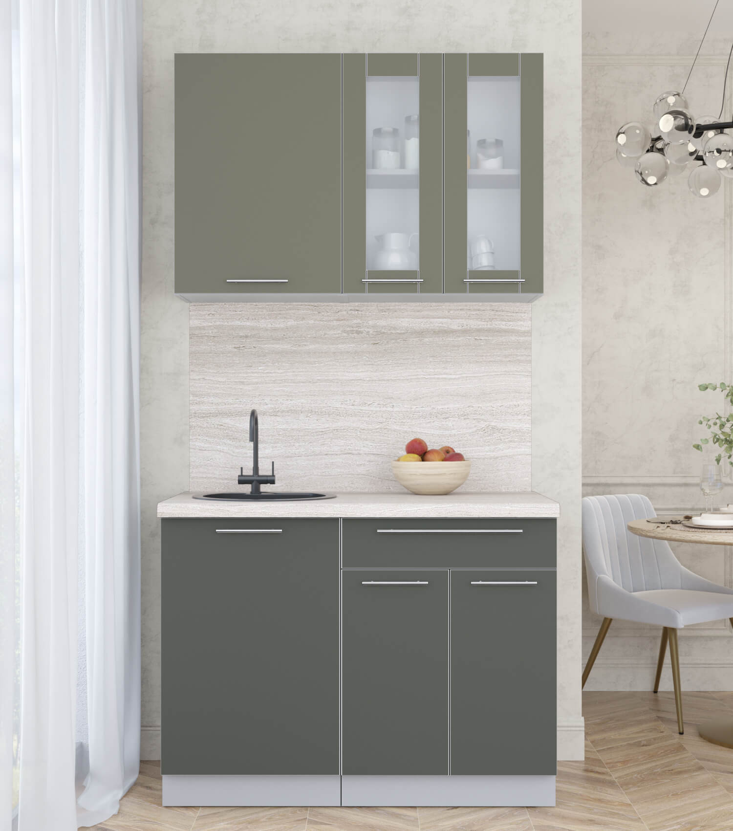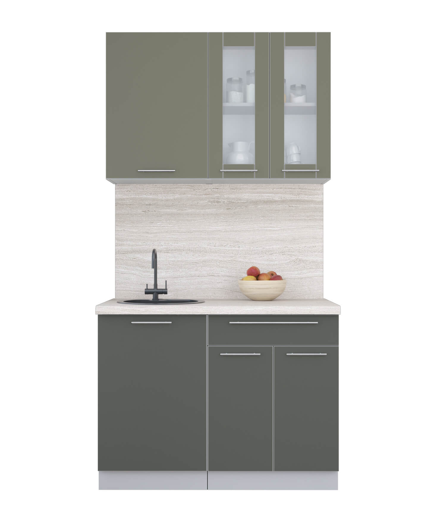ГОТОВАЯ КУХНЯ ПЛАСТИК 1,1Б (КВАРЦЕВЫЙ/ ШТОРМ) - Yuta.by