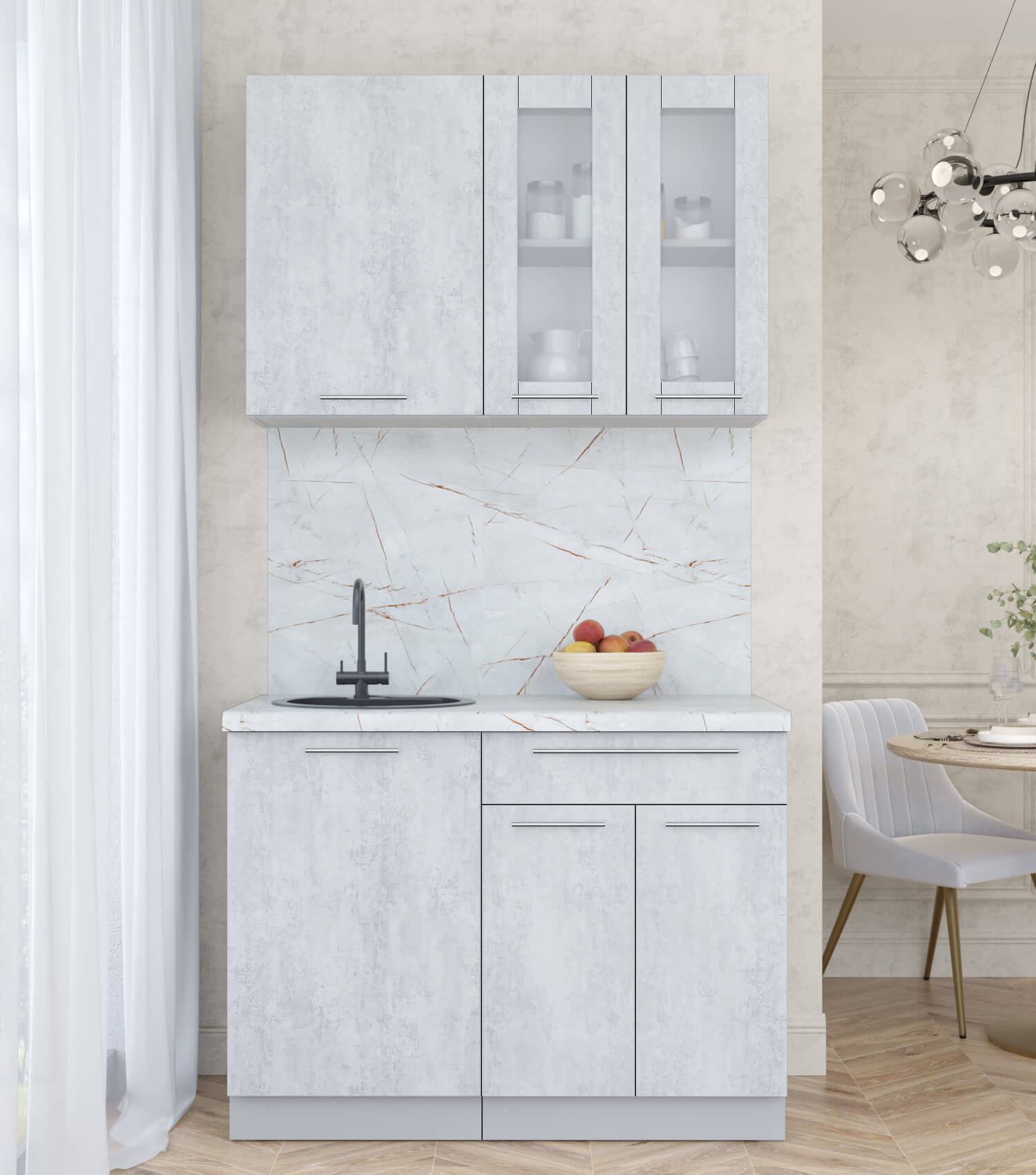 ГОТОВАЯ КУХНЯ ПЛАСТИК 1,1Б (ОКСИД СВЕТЛЫЙ/ ОКСИД СВЕТЛЫЙ) - Yuta.by