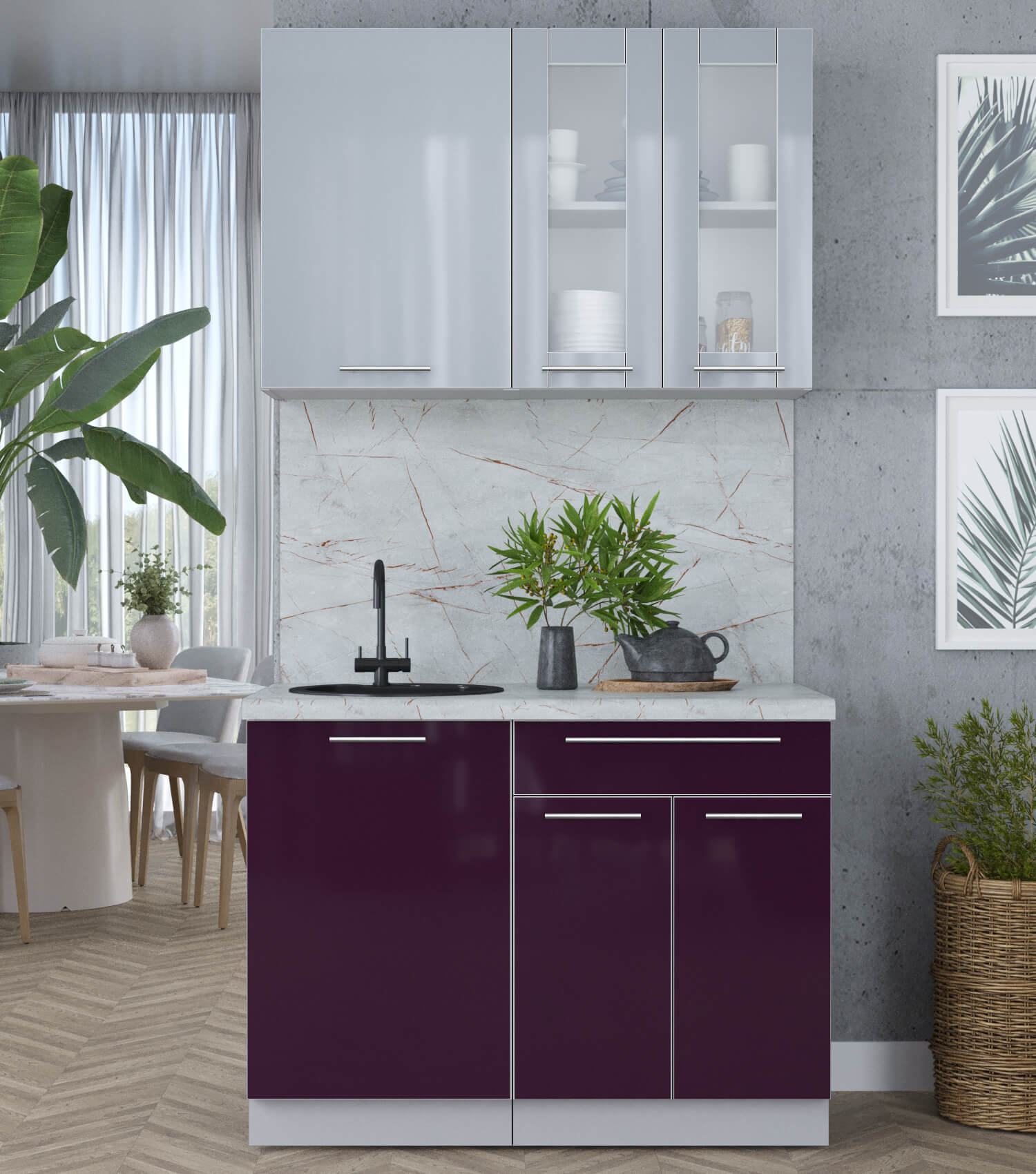 ГОТОВАЯ КУХНЯ ПЛАСТИК 1,1Б (ТУМАННЫЙ ГЛЯНЕЦ/ СЛИВА ГЛЯНЕЦ) - Yuta.by