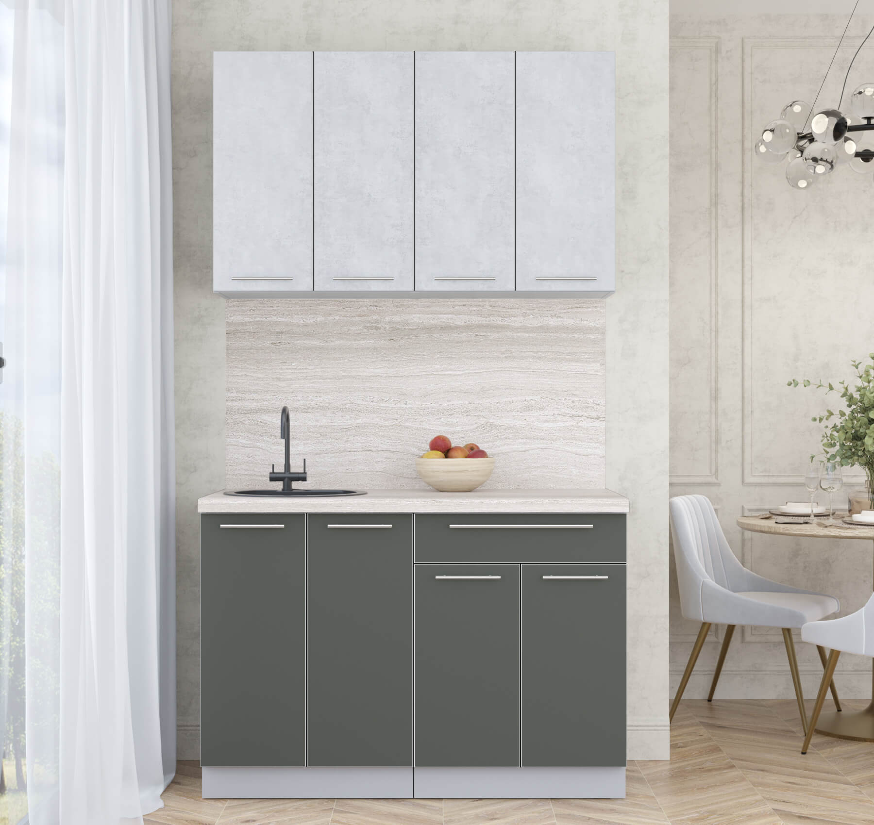ГОТОВАЯ КУХНЯ ПЛАСТИК 1,2А (ОКСИД СВЕТЛЫЙ/ ШТОРМ) - Yuta.by
