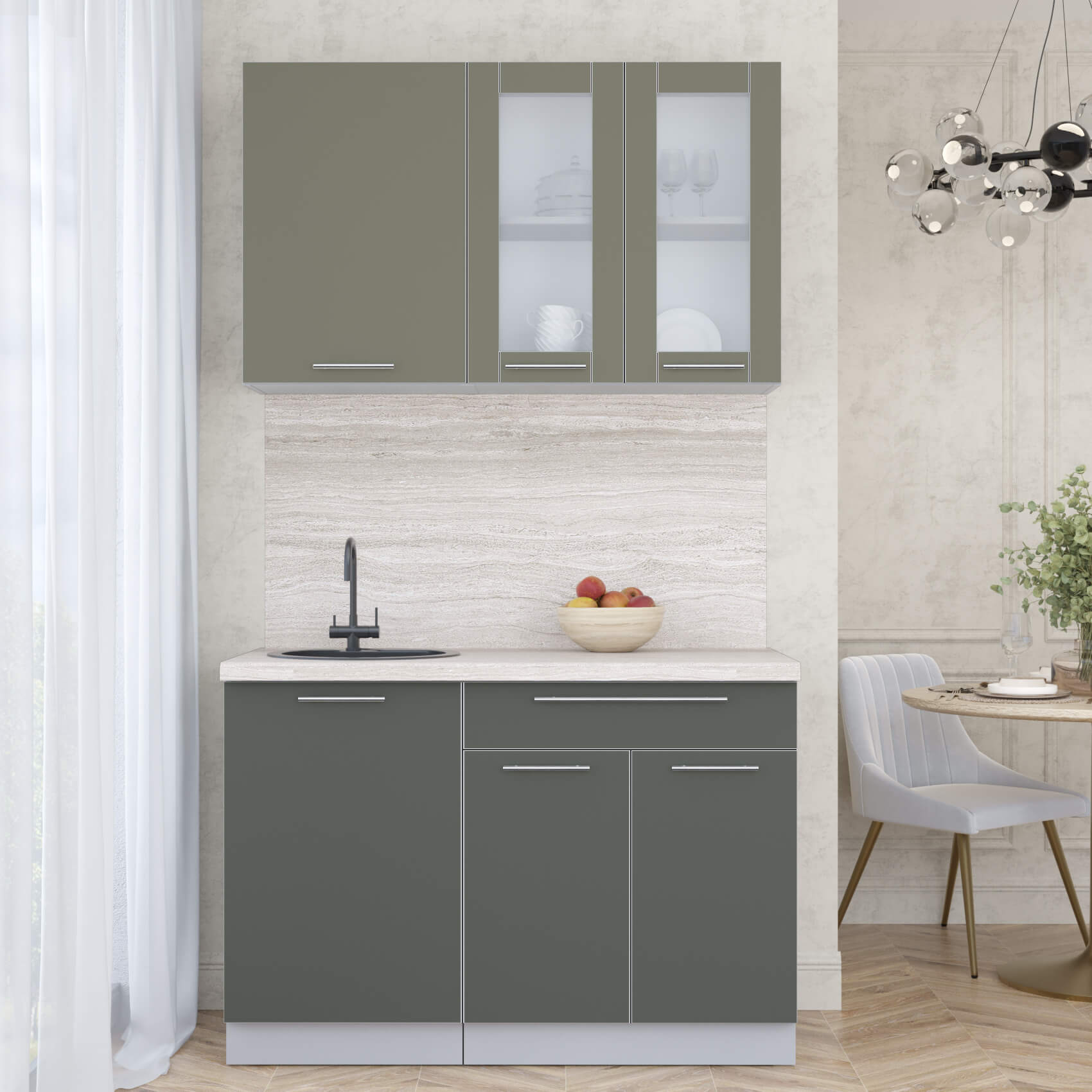 ГОТОВАЯ КУХНЯ ПЛАСТИК 1,2Б (КВАРЦЕВЫЙ/ ШТОРМ) - Yuta.by