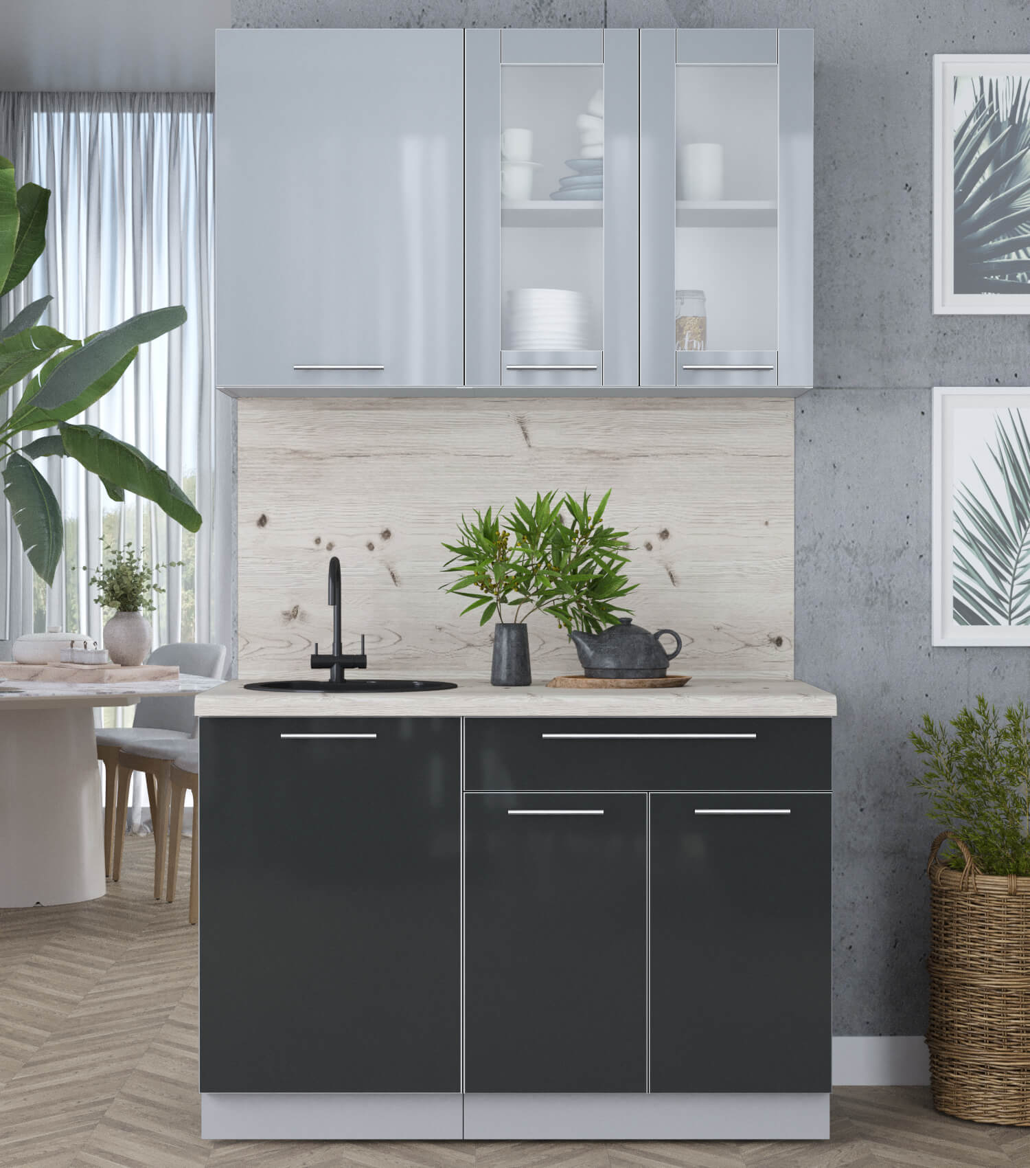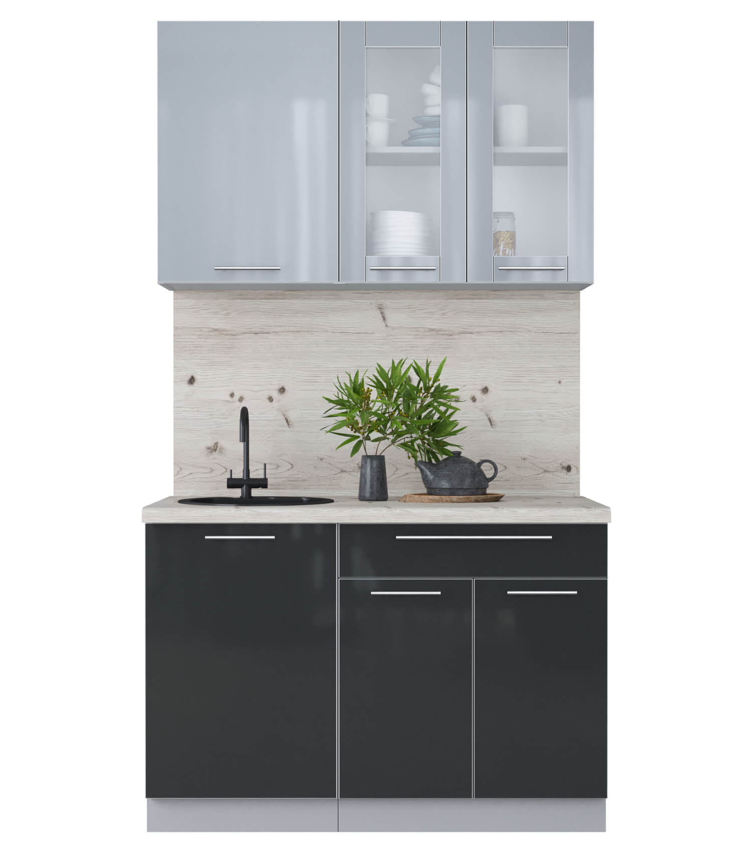 ГОТОВАЯ КУХНЯ ПЛАСТИК 1,2Б (ТУМАННЫЙ ГЛЯНЕЦ/ АНТРАЦИТ) - Yuta.by