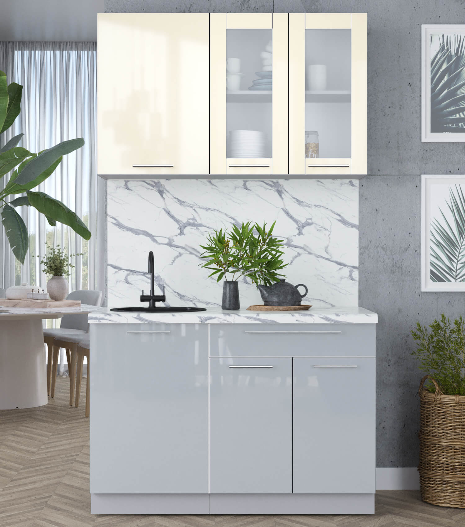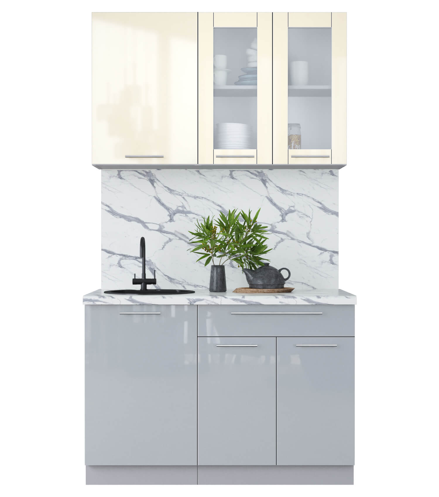 ГОТОВАЯ КУХНЯ ПЛАСТИК 1,2Б (ВАНИЛЬ ГЛЯНЕЦ/ ТУМАННЫЙ ГЛЯНЕЦ) - Yuta.by