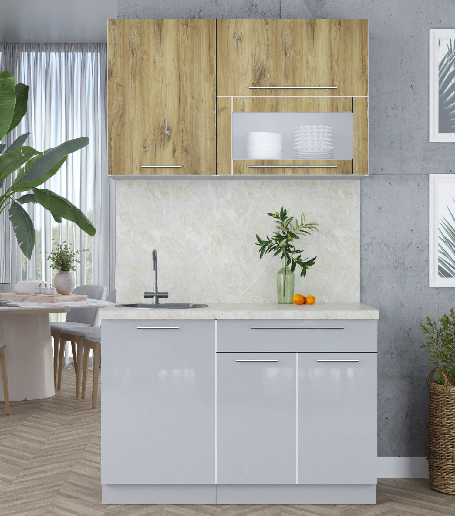 ГОТОВАЯ КУХНЯ ПЛАСТИК 1,2В (ДУБ ЭПОКСИД/ ТУМАННЫЙ ГЛЯНЕЦ) - Yuta.by