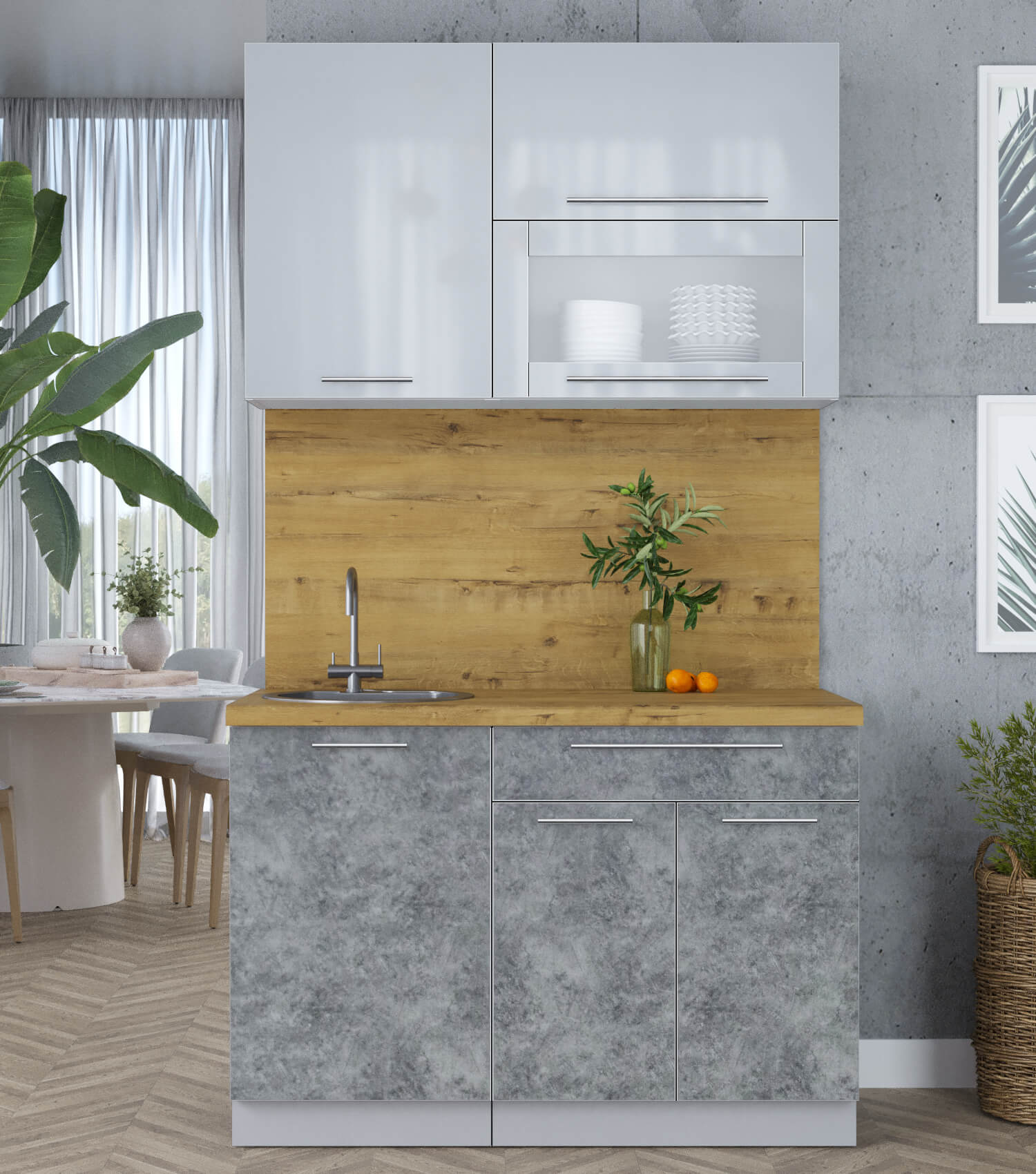 ГОТОВАЯ КУХНЯ ПЛАСТИК 1,2В (ТУМАННЫЙ ГЛЯНЕЦ/ МРАМОР) - Yuta.by