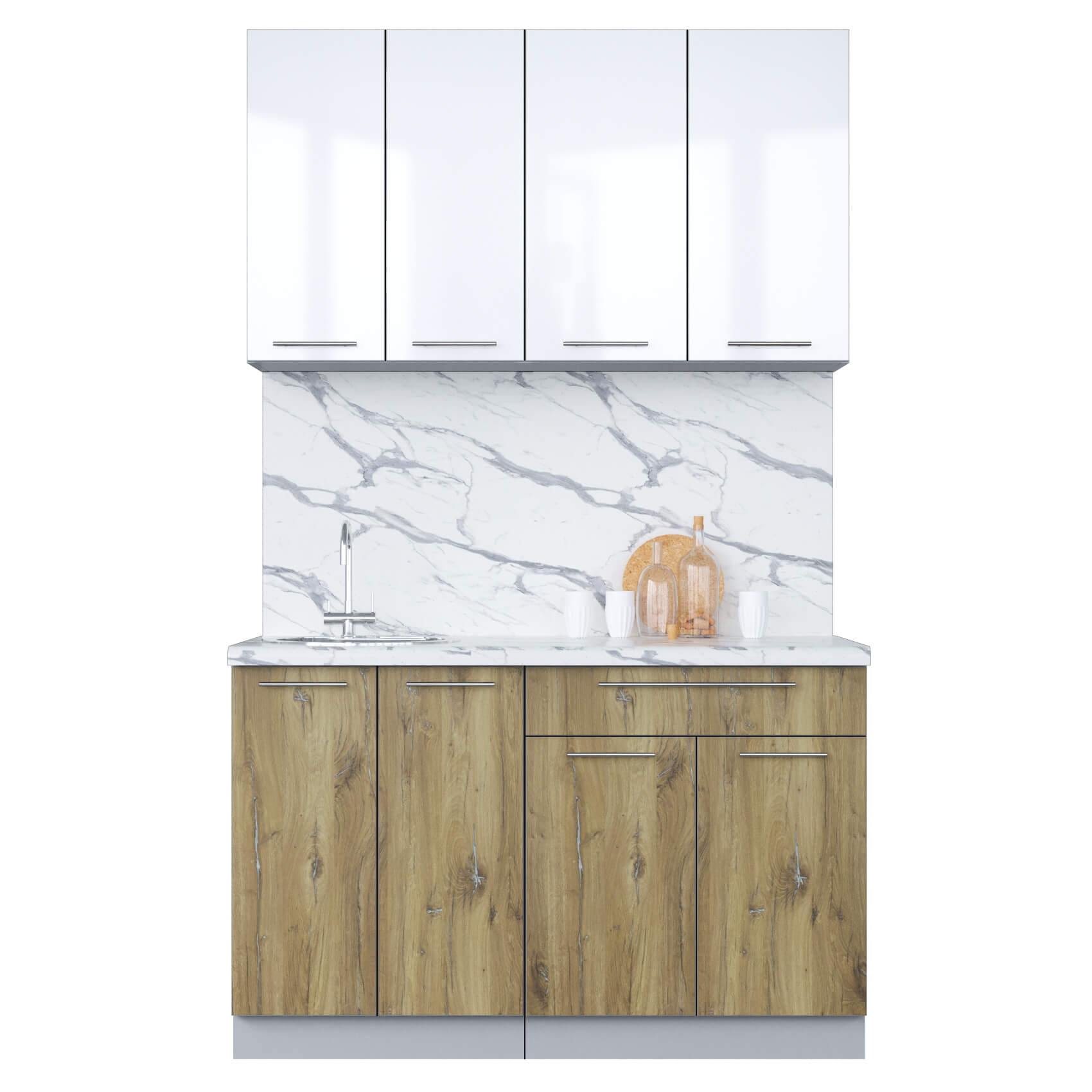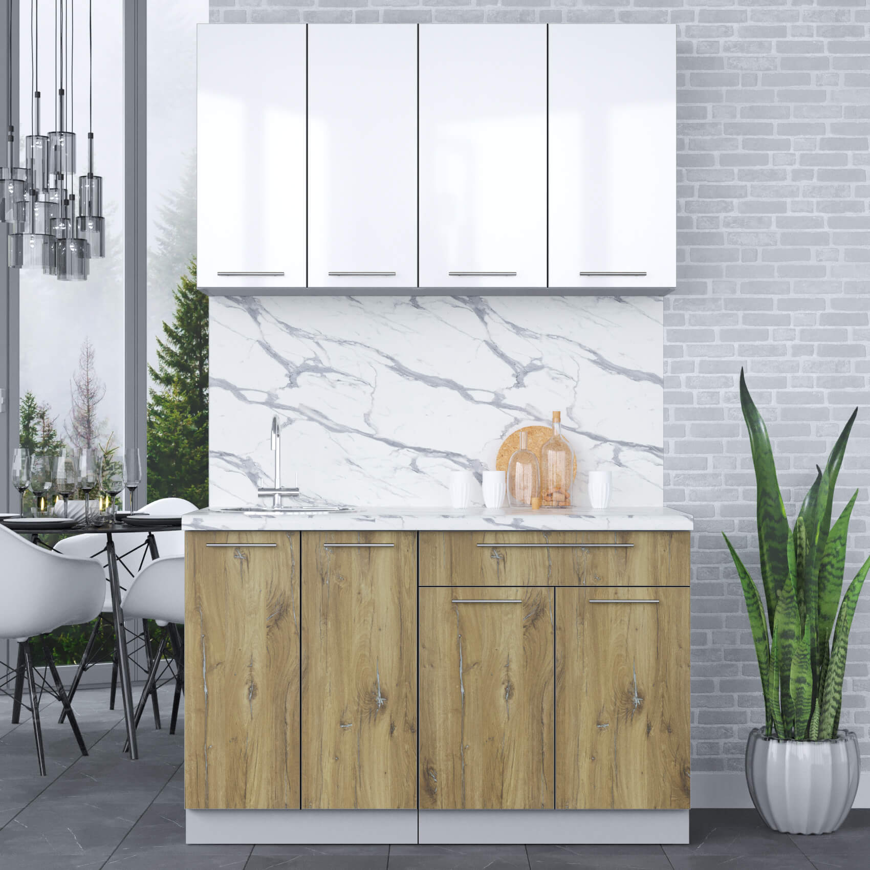 ГОТОВАЯ КУХНЯ ПЛАСТИК 1,3А (БЕЛЫЙ ГЛЯНЕЦ/ ДУБ ЭПОКСИД) - Yuta.by