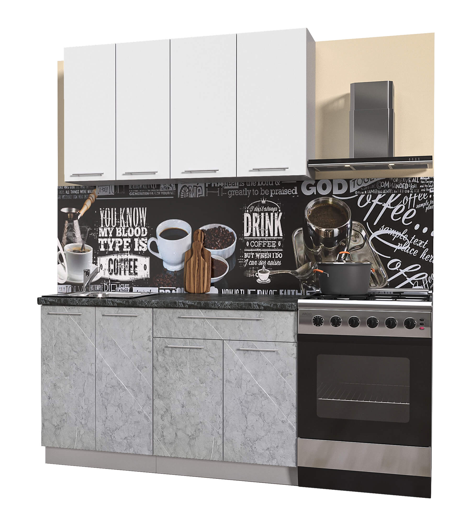 ГОТОВАЯ КУХНЯ ПЛАСТИК 1,3А (БЕЛЫЙ ГЛЯНЕЦ/ МРАМОР) - Yuta.by