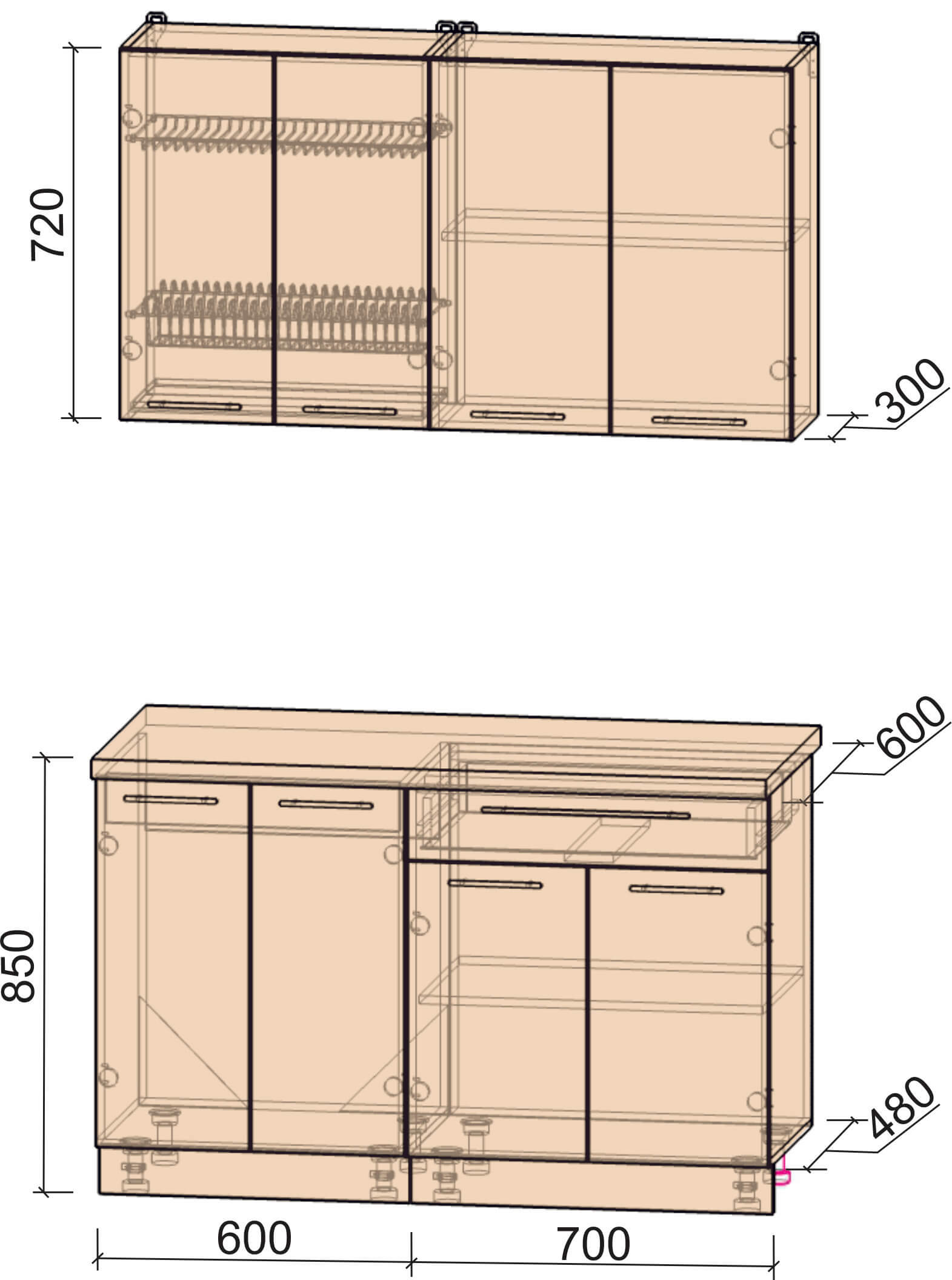 Глубина нижних шкафов