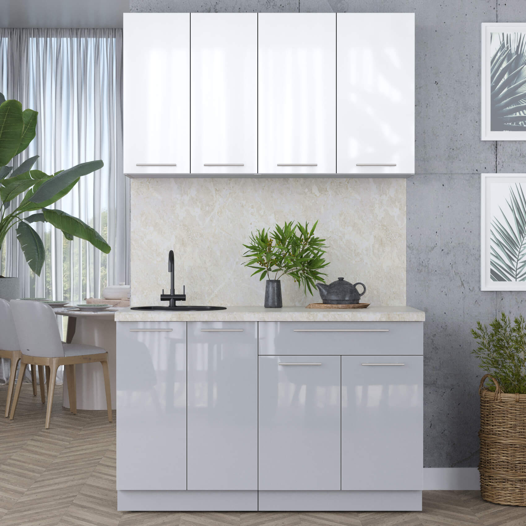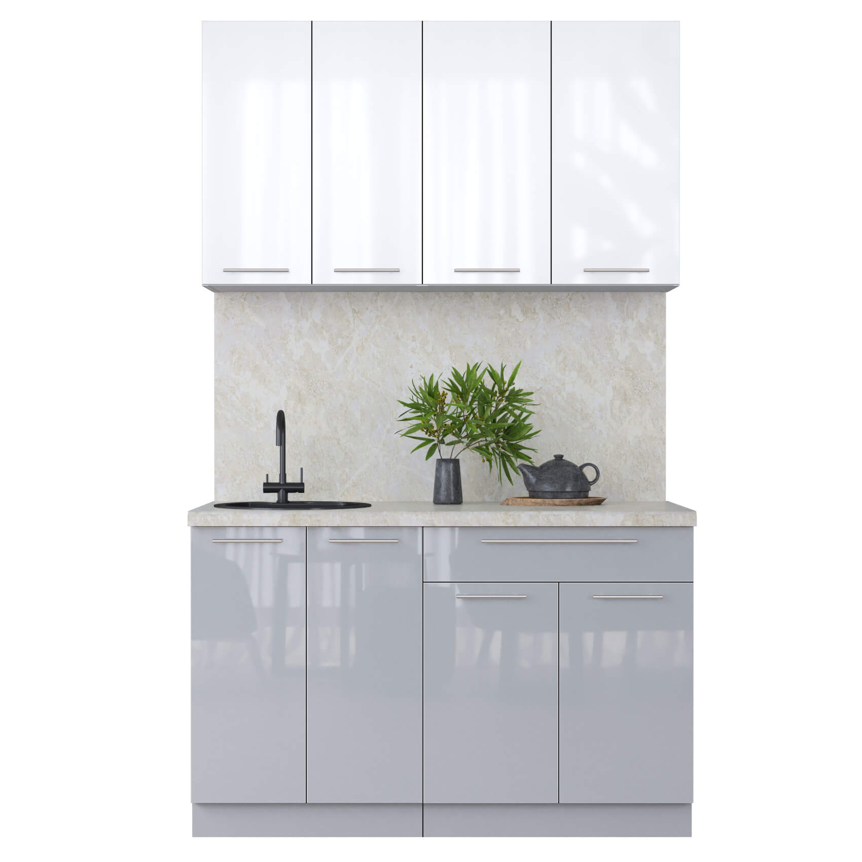 ГОТОВАЯ КУХНЯ ПЛАСТИК 1,3А (БЕЛЫЙ ГЛЯНЕЦ/ ТУМАННЫЙ ГЛЯНЕЦ) - Yuta.by