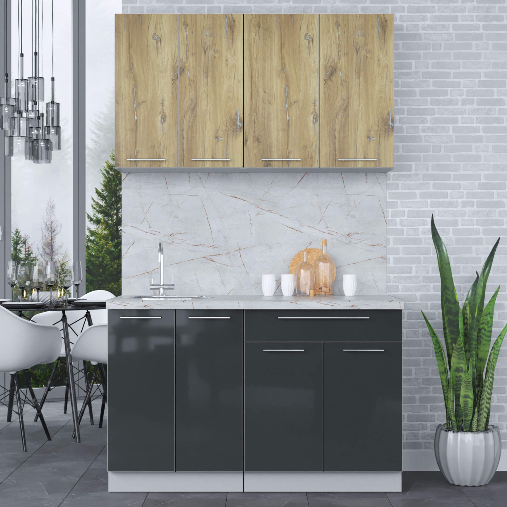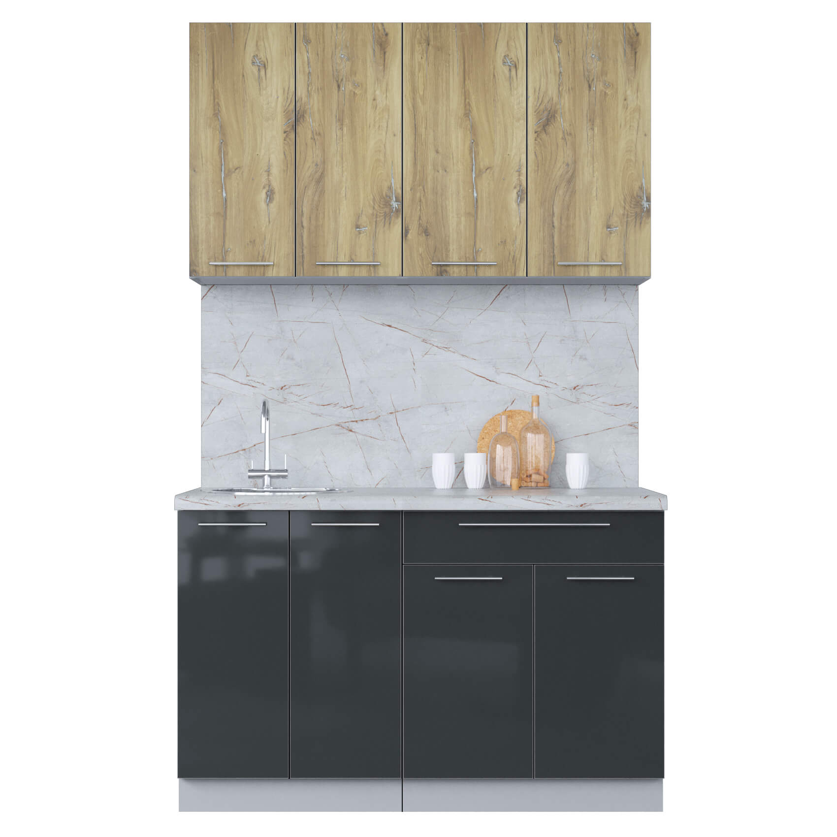 ГОТОВАЯ КУХНЯ ПЛАСТИК 1,3А (ДУБ ЭПОКСИД/ АНТРАЦИТ ГЛЯНЕЦ) - Yuta.by