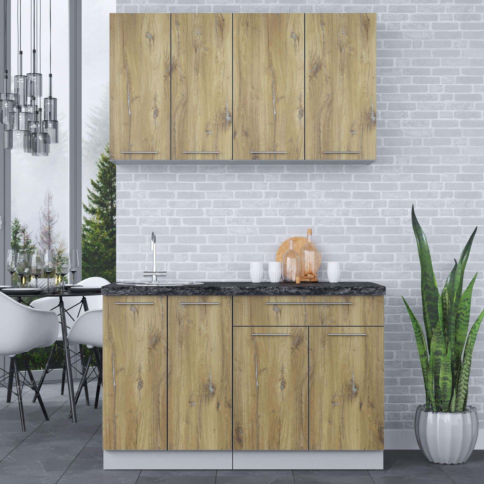 ГОТОВАЯ КУХНЯ ПЛАСТИК 1,3А (ДУБ ЭПОКСИД/ ДУБ ЭПОКСИД) - Yuta.by