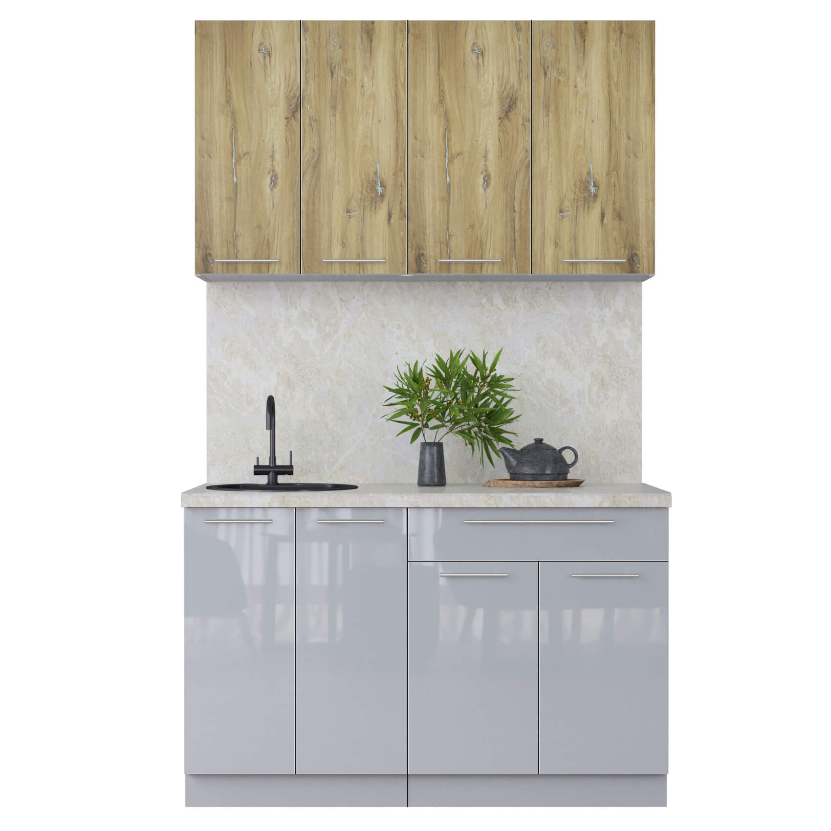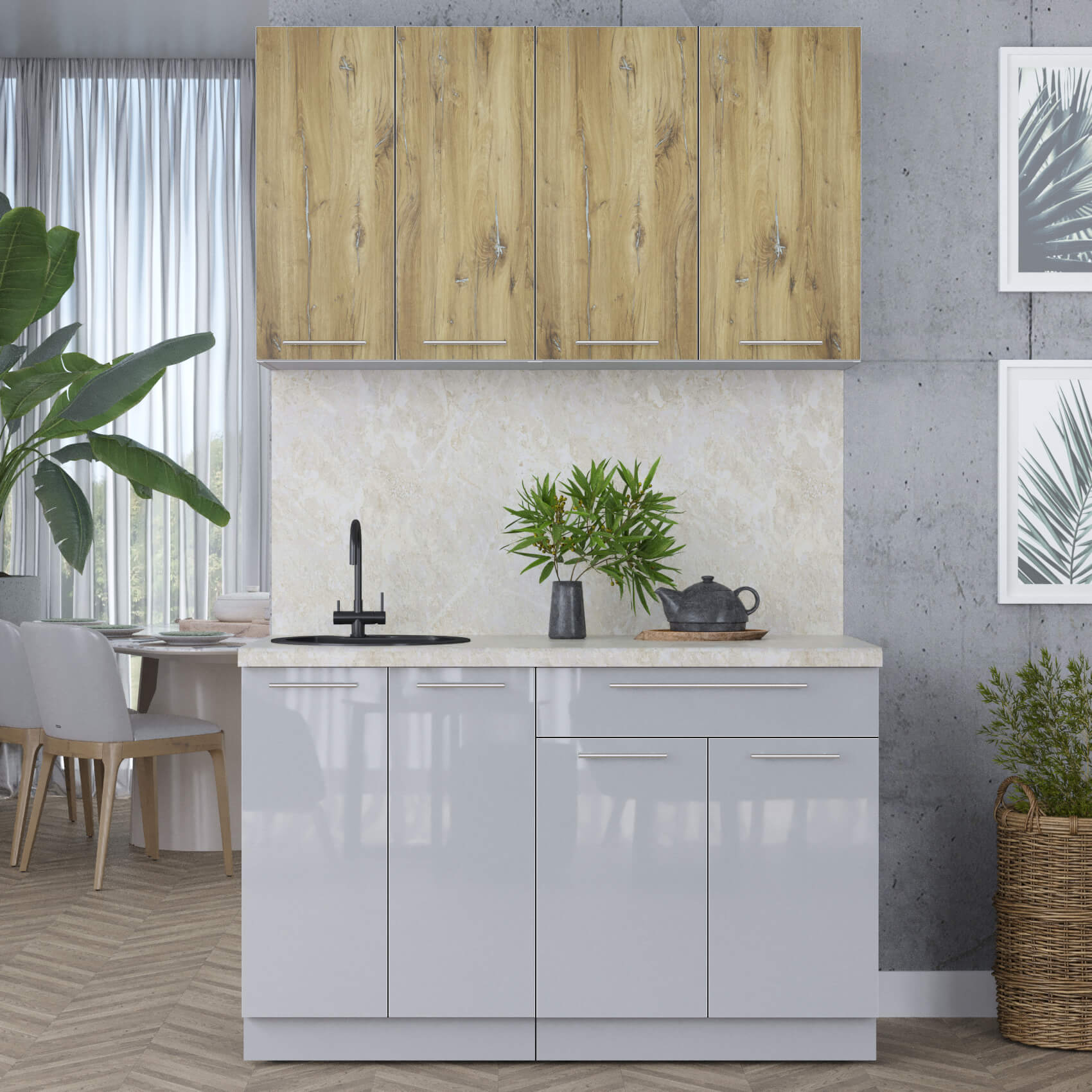 ГОТОВАЯ КУХНЯ ПЛАСТИК 1,3А (ДУБ ЭПОКСИД/ ТУМАННЫЙ ГЛЯНЕЦ) - Yuta.by
