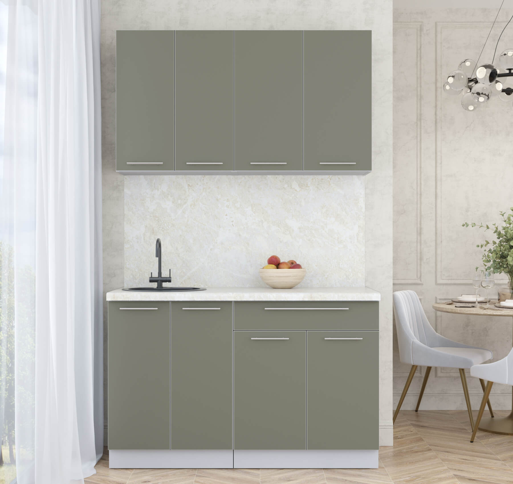 ГОТОВАЯ КУХНЯ ПЛАСТИК 1,3А (КВАРЦЕВЫЙ/ КВАРЦЕВЫЙ) - Yuta.by