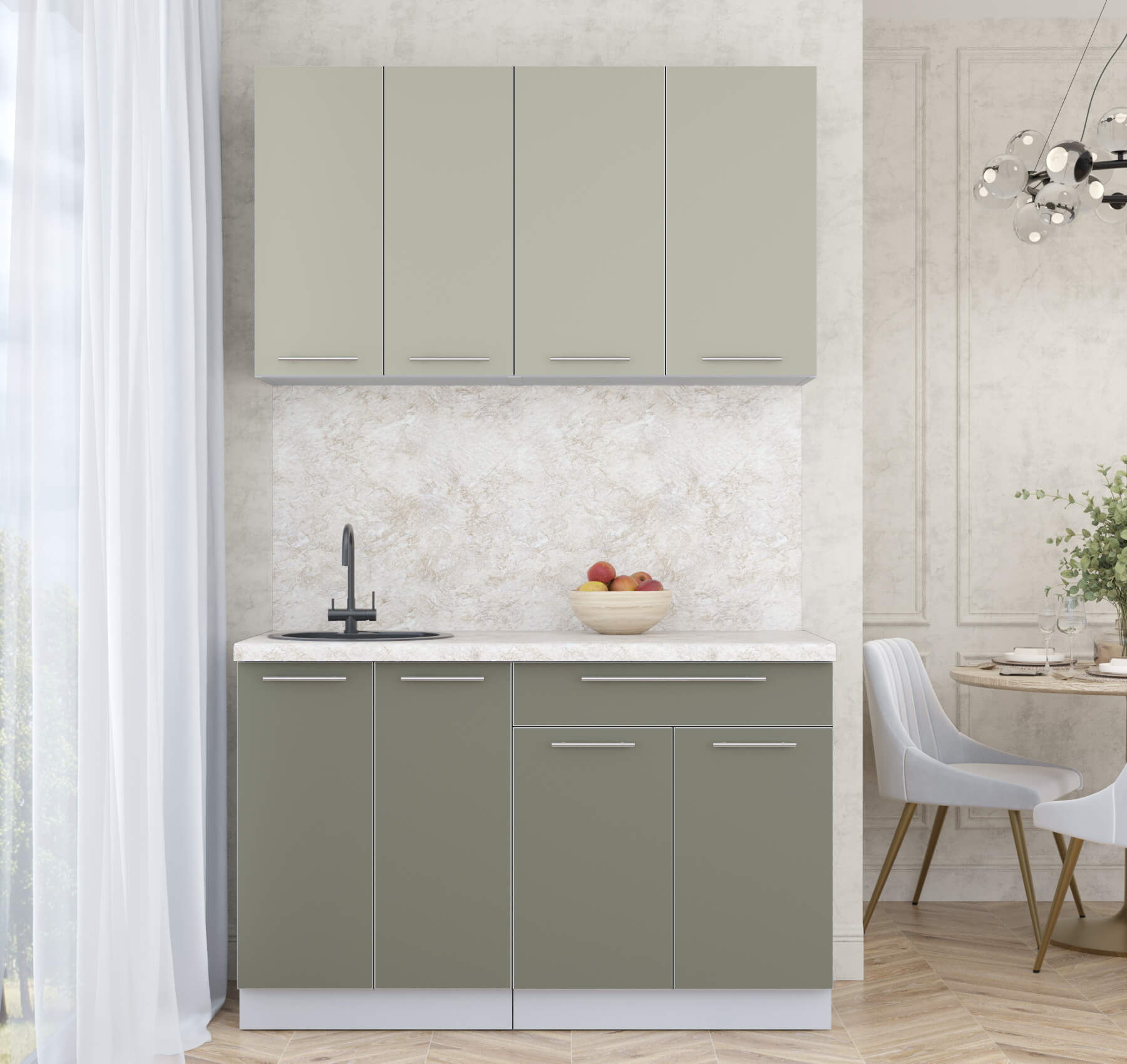 ГОТОВАЯ КУХНЯ ПЛАСТИК 1,3А (ЛАТТЕ/ КВАРЦЕВЫЙ) - Yuta.by