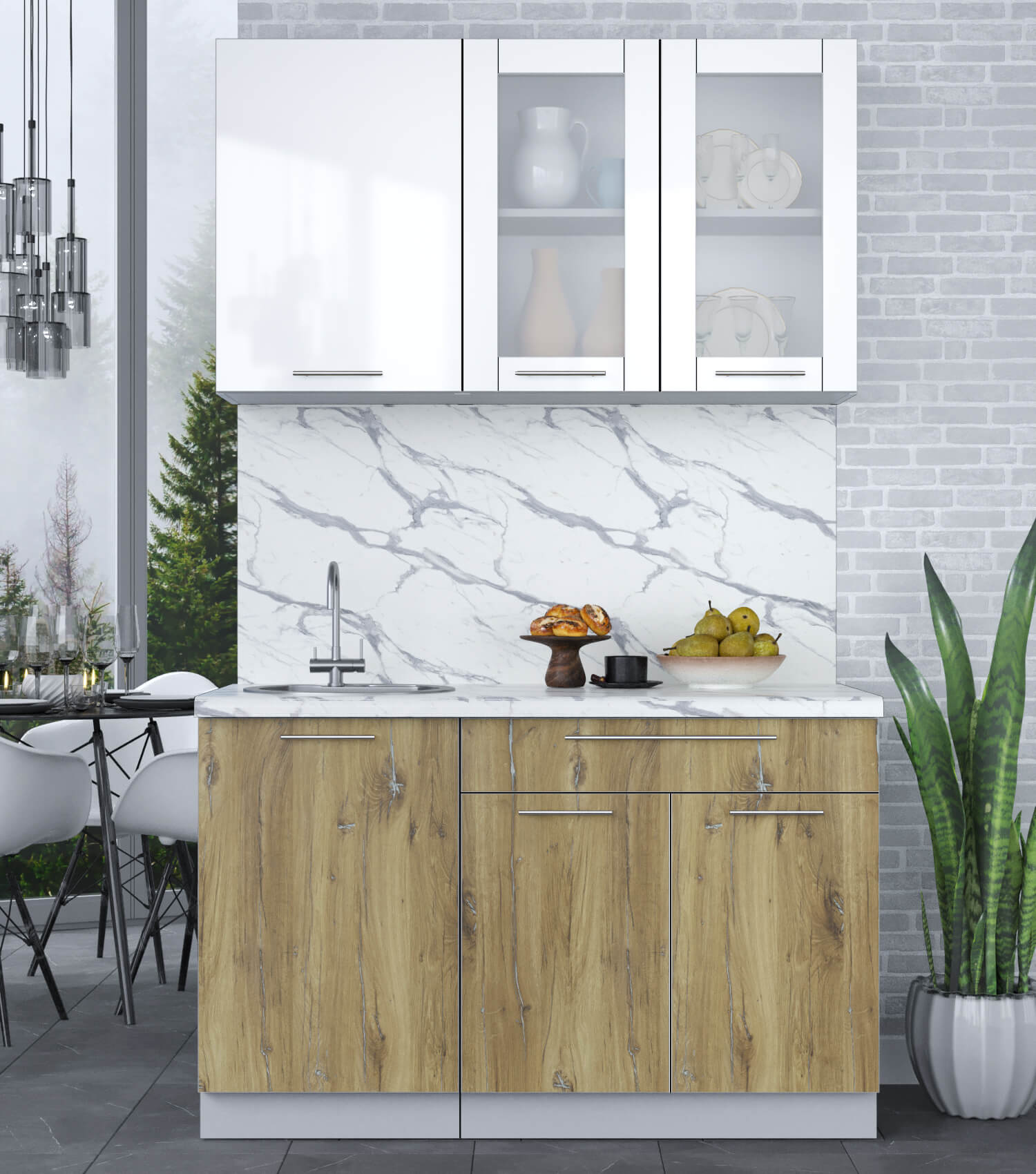 ГОТОВАЯ КУХНЯ ПЛАСТИК 1,3Б (БЕЛЫЙ ГЛЯНЕЦ/ ДУБ ЭПОКСИД) - Yuta.by