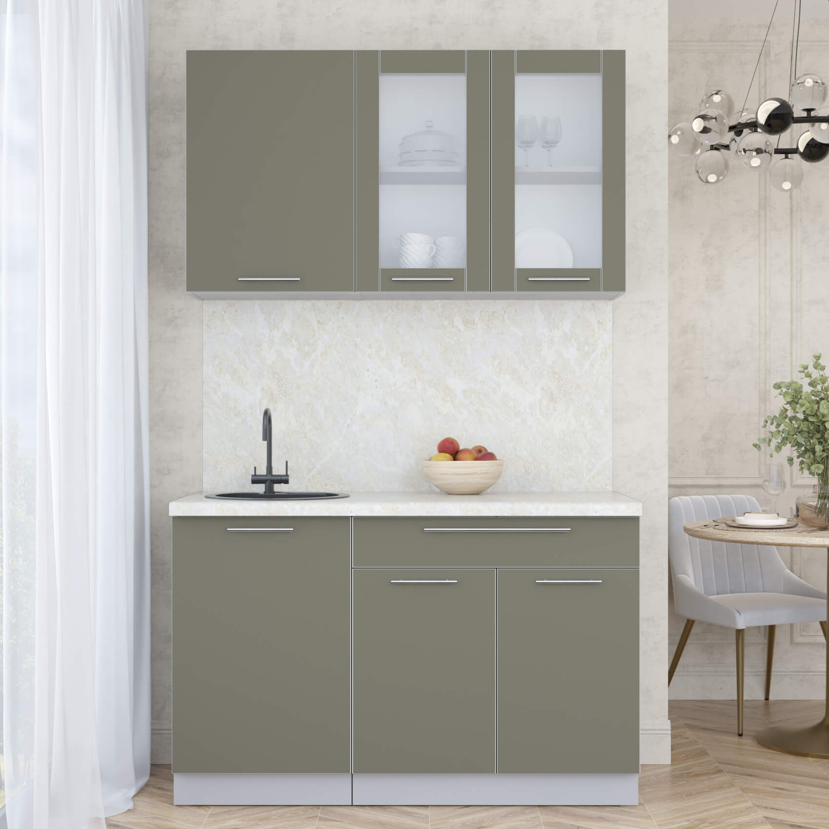 ГОТОВАЯ КУХНЯ ПЛАСТИК 1,3Б (КВАРЦЕВЫЙ/ КВАРЦЕВЫЙ) - Yuta.by