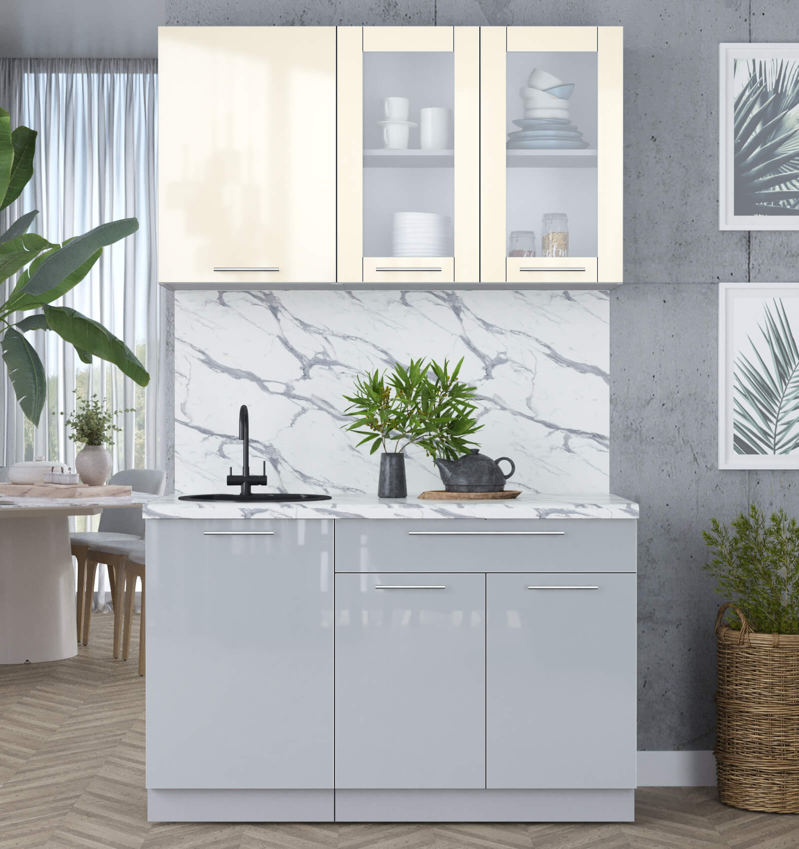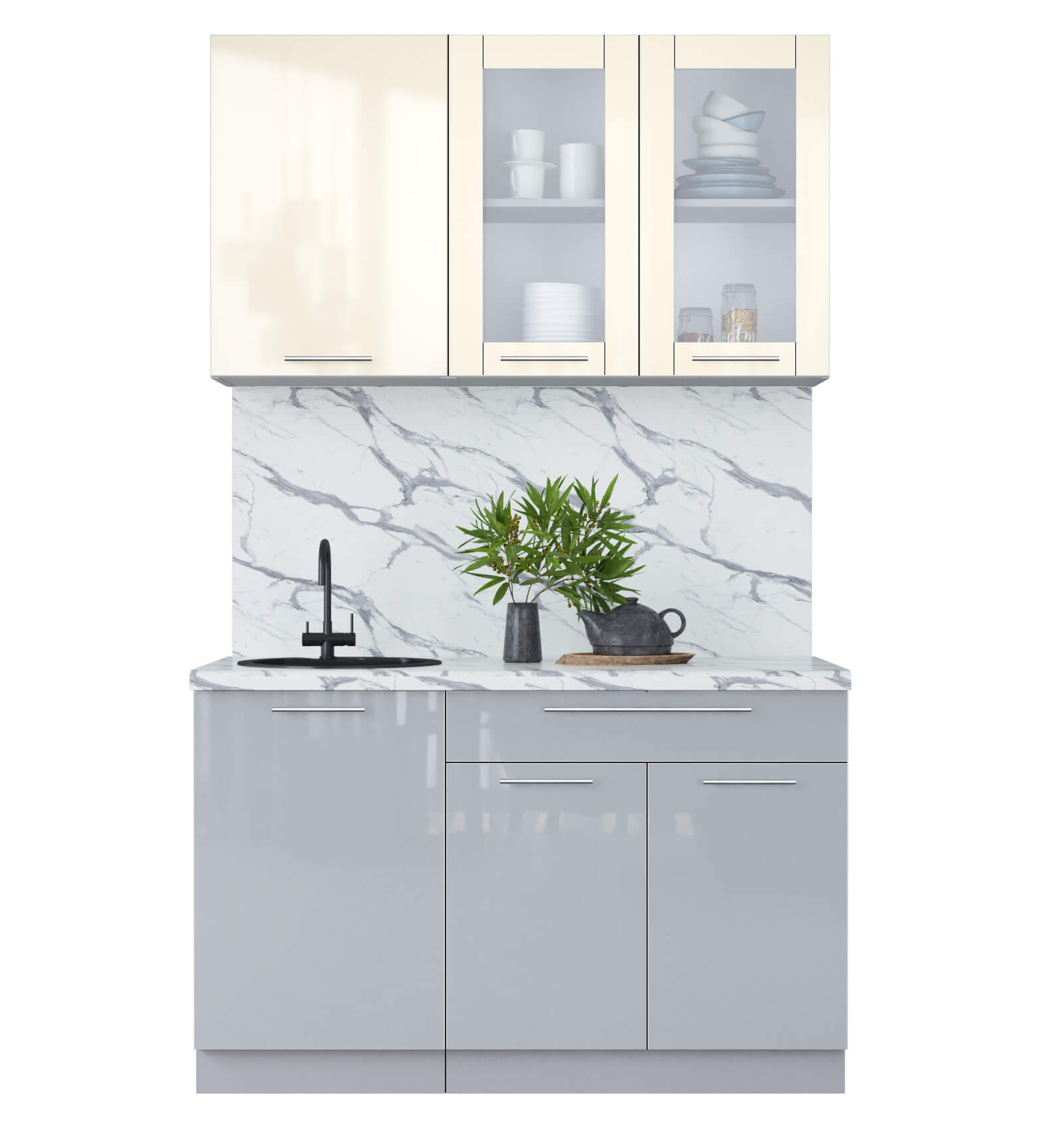 ГОТОВАЯ КУХНЯ ПЛАСТИК 1,3Б (ВАНИЛЬ ГЛЯНЕЦ/ ТУМАННЫЙ ГЛЯНЕЦ) - Yuta.by