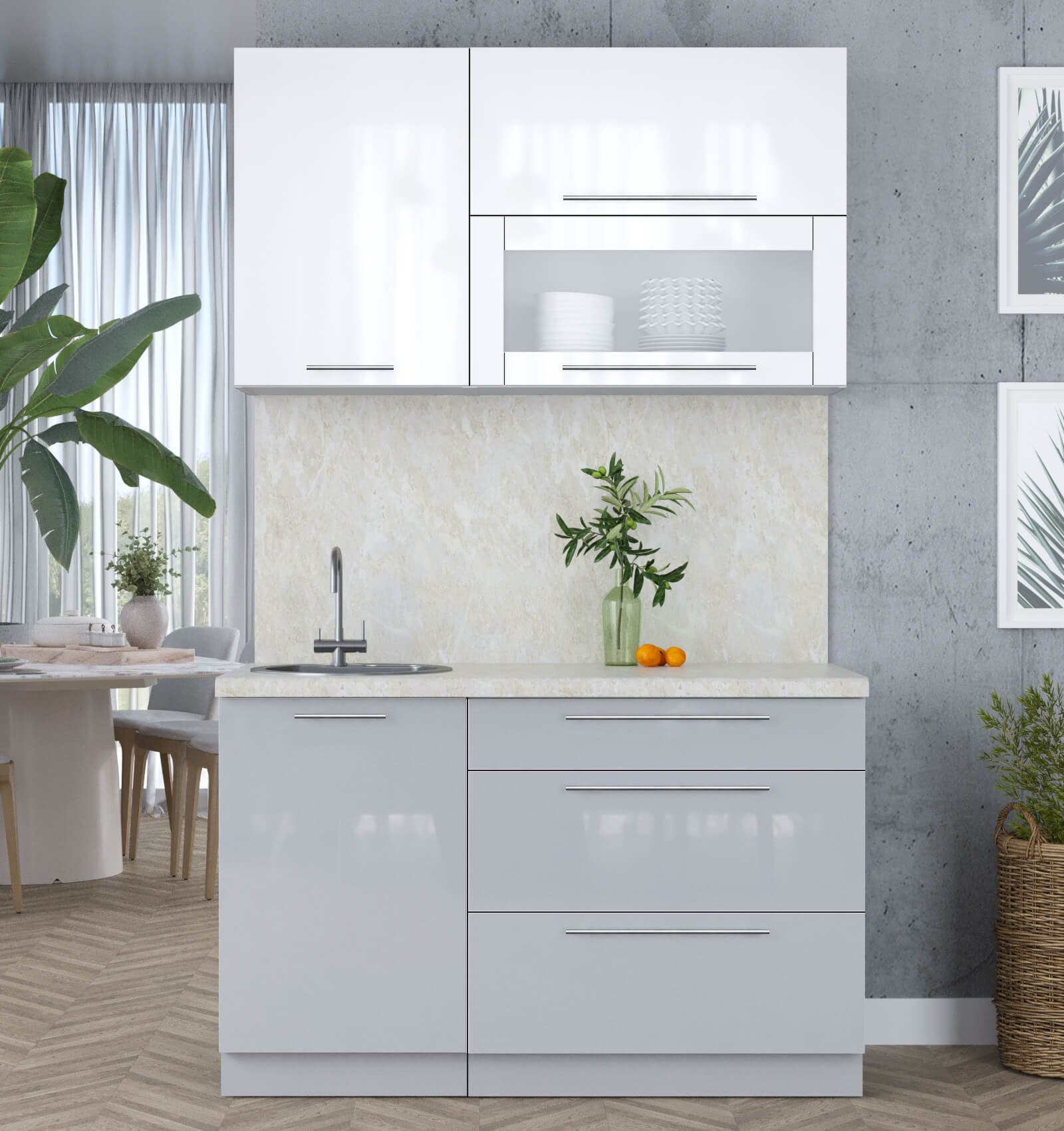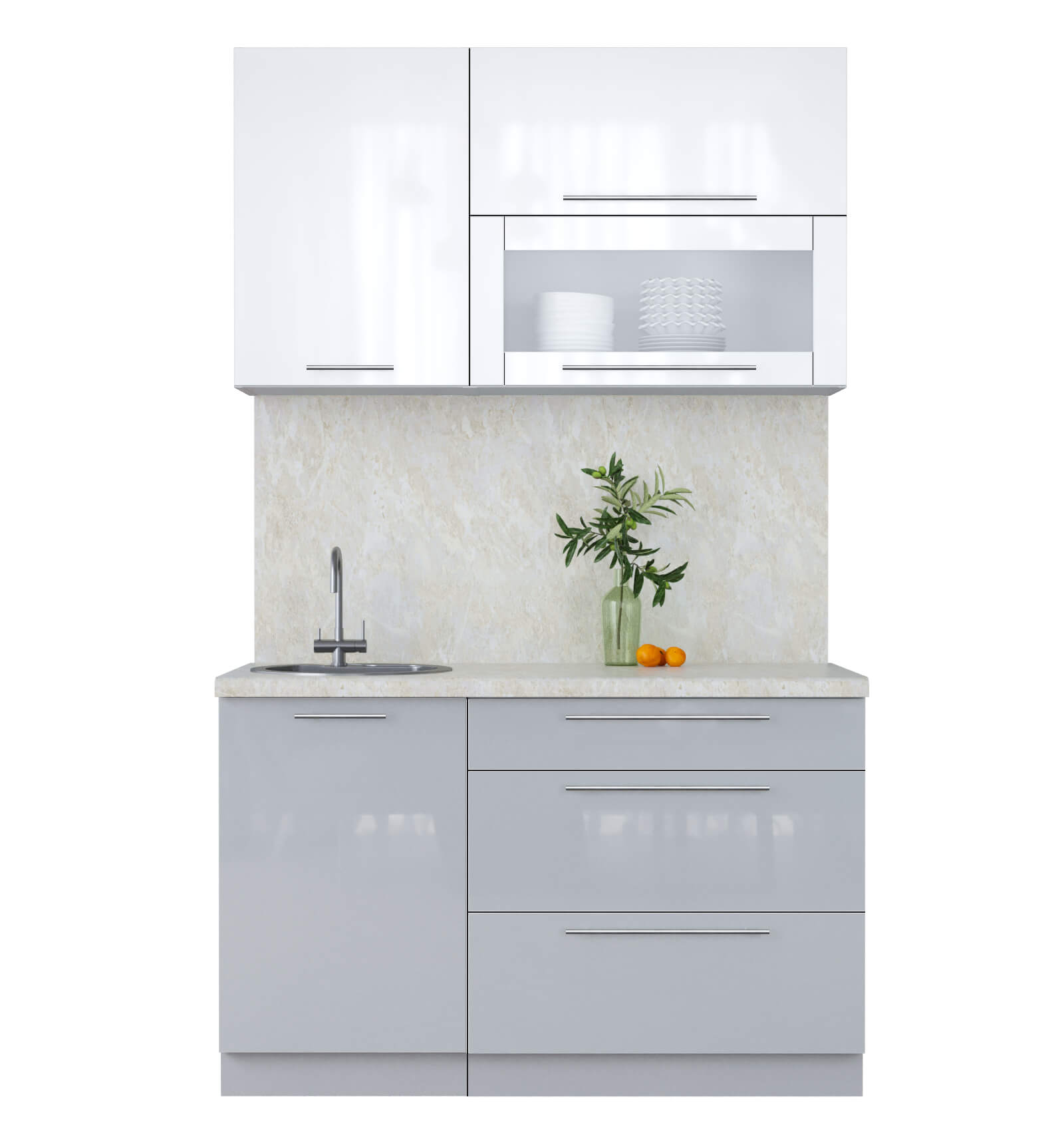 ГОТОВАЯ КУХНЯ ПЛАСТИК 1,3В (БЕЛЫЙ ГЛЯНЕЦ/ ТУМАННЫЙ ГЛЯНЕЦ) - Yuta.by