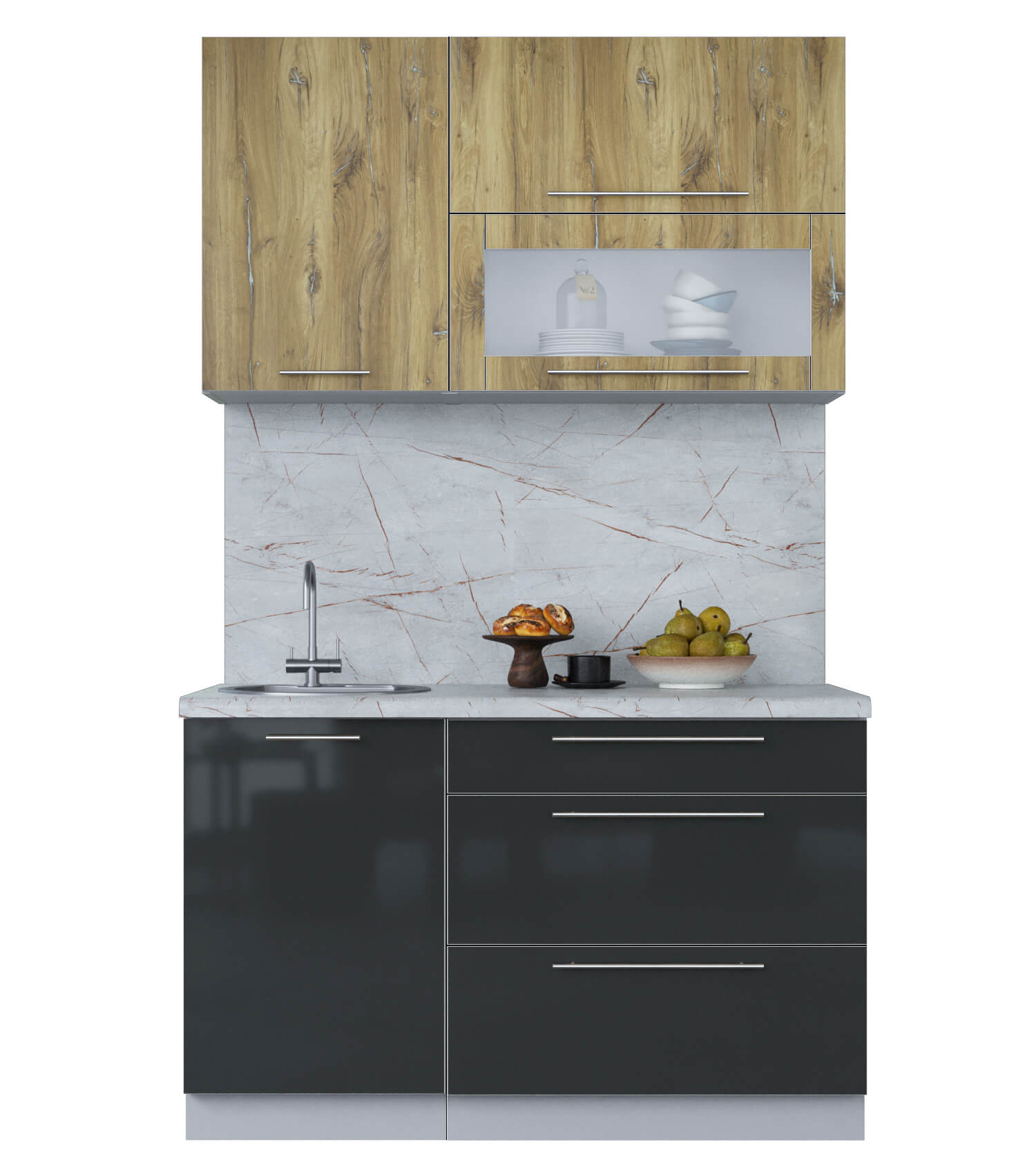 Гарнитур из МДФ, покрытый пластиком, безусловно, получится дороже, чем мебель из ДСП. Тем не менее, его приобретение окажется гораздо практичнее, нежели выбор в пользу кухни, обработанной шпоном.