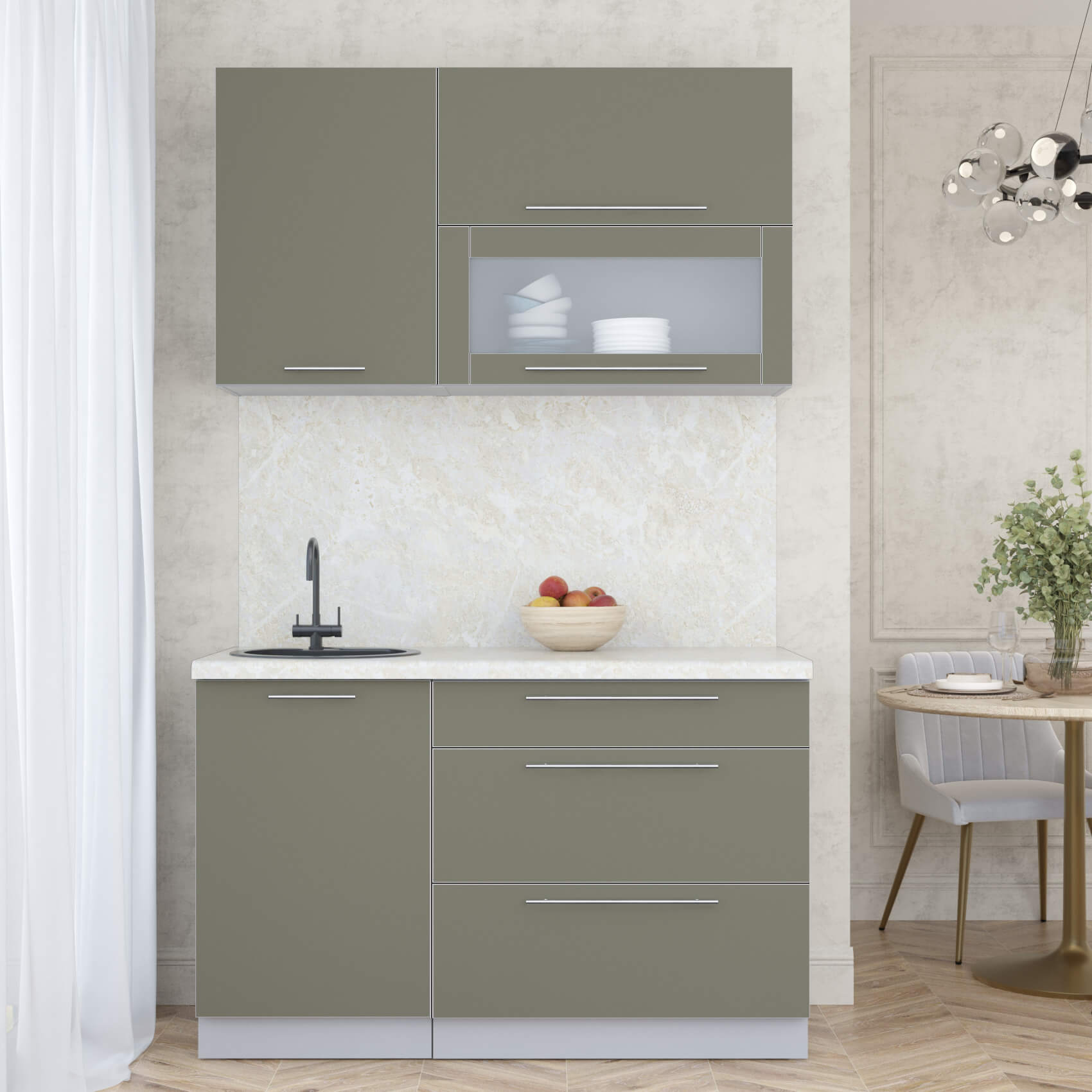 ГОТОВАЯ КУХНЯ ПЛАСТИК 1,3В (КВАРЦЕВЫЙ/ КВАРЦЕВЫЙ) - Yuta.by