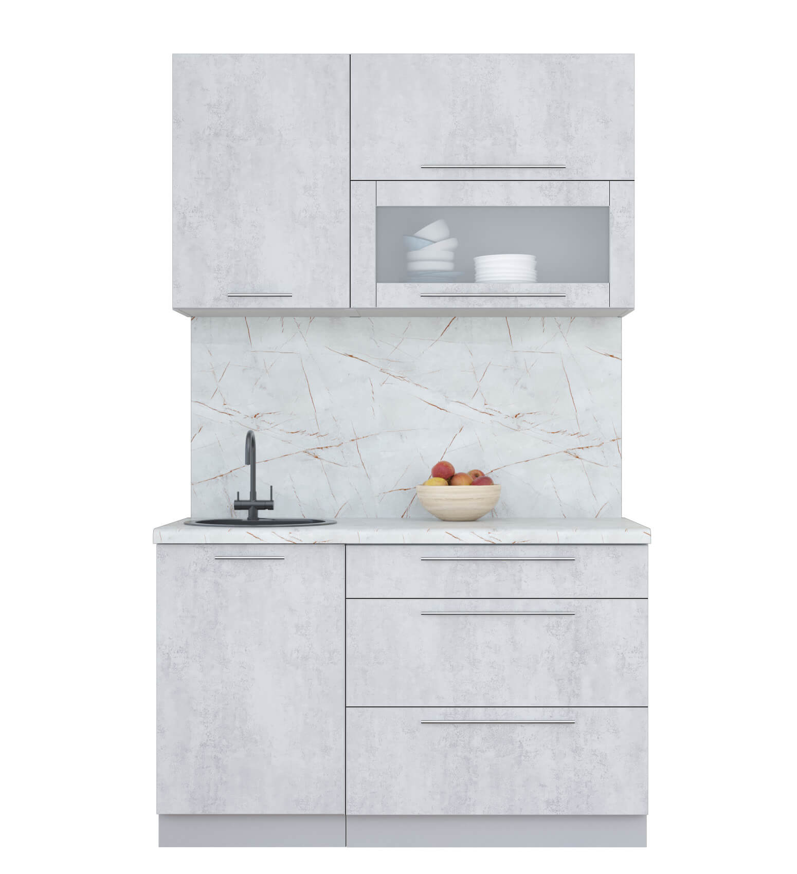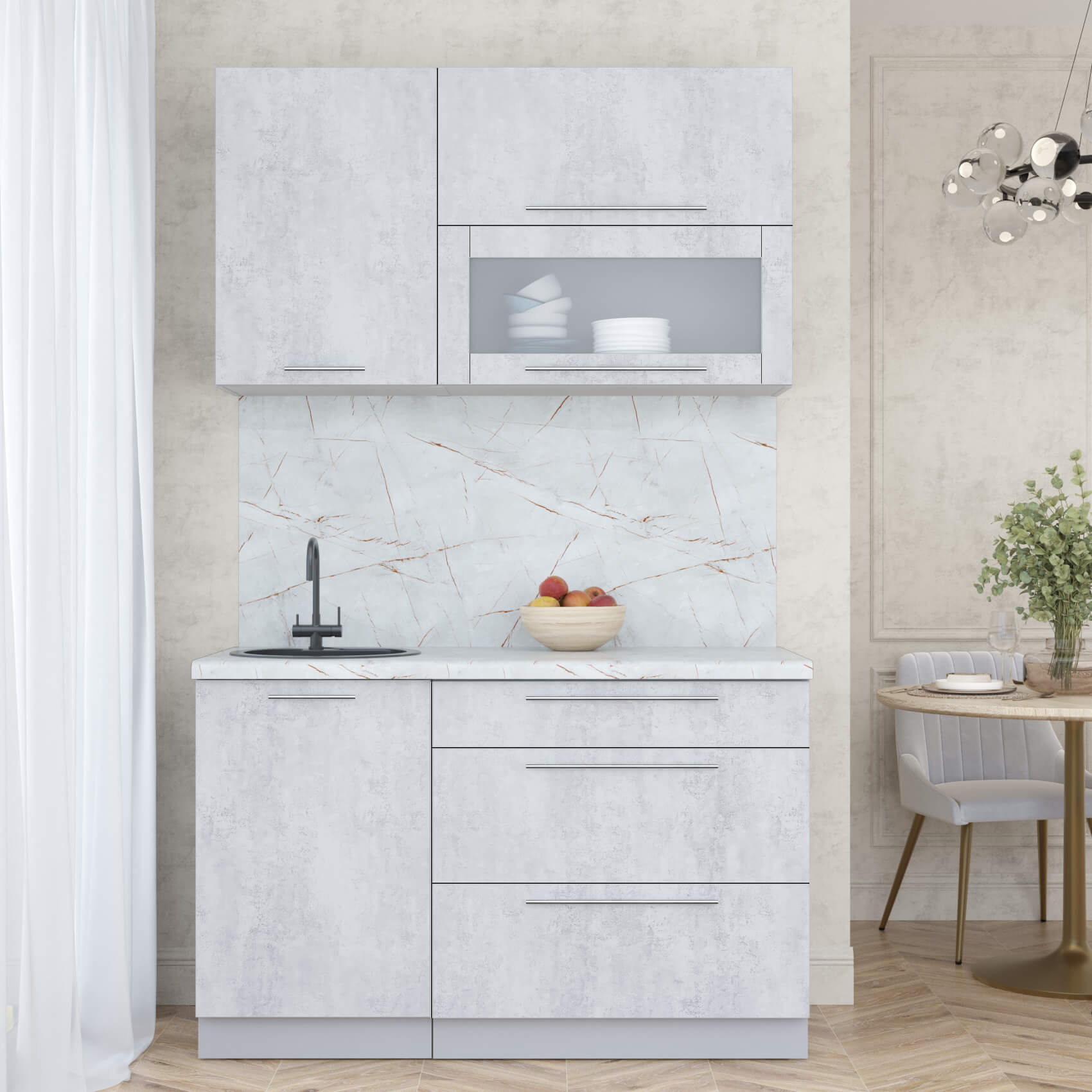 ГОТОВАЯ КУХНЯ ПЛАСТИК 1,3В (ОКСИД СВЕТЛЫЙ/ ОКСИД СВЕТЛЫЙ) - Yuta.by